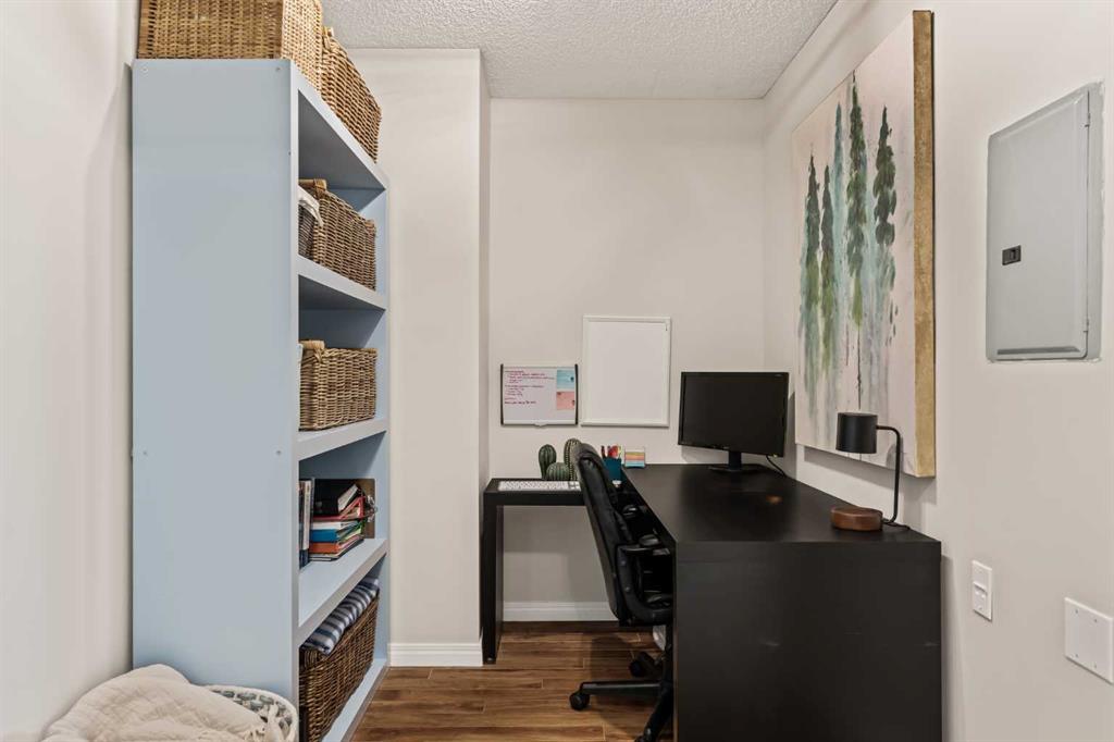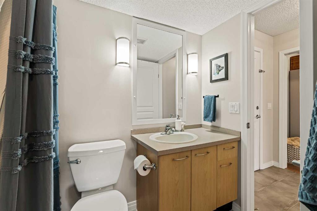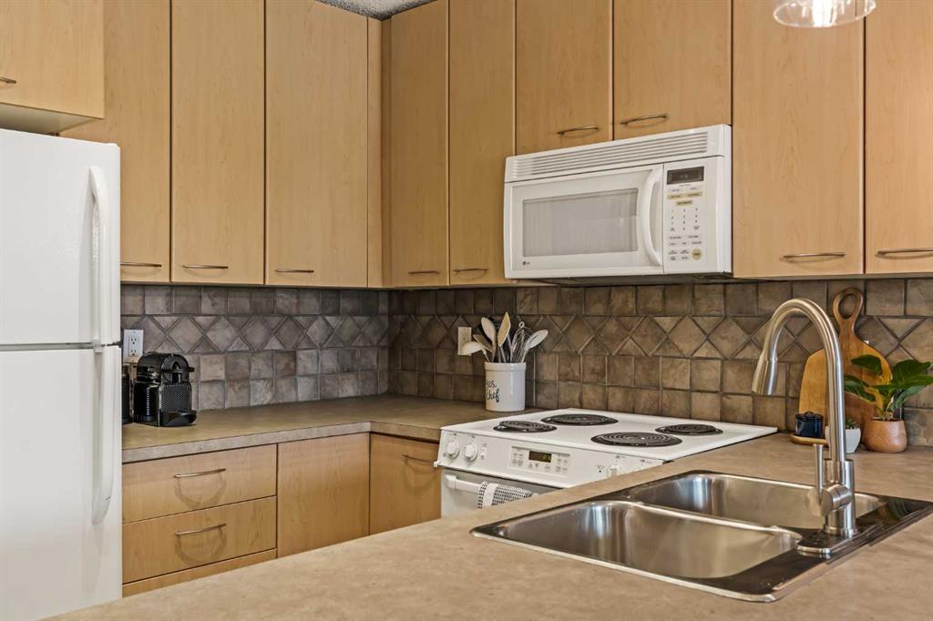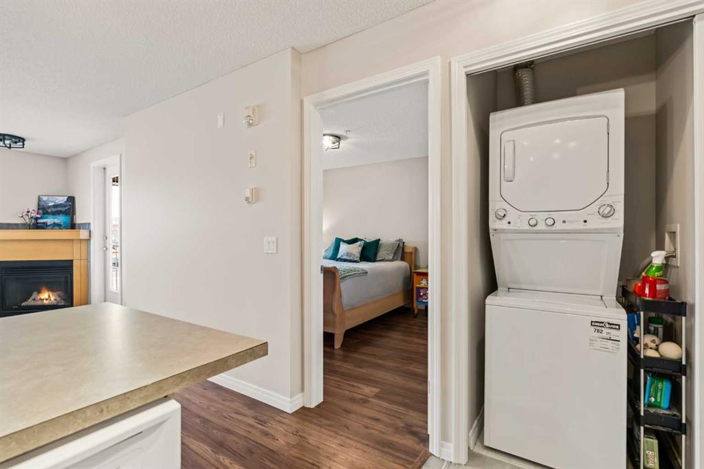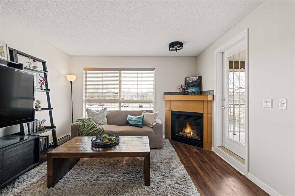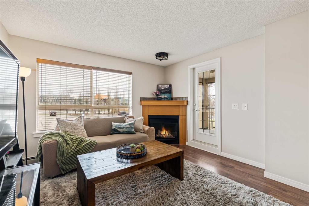 Welcome to this beautiful condo that features over 650 square feet of living space and is situated within the central and desirable community of Lincoln Park, just steps from Mount Royal University. This 1 bedroom + den, 1 bathroom unit is located on the second floor of this well-maintained building and features low condo fees, offering the perfect opportunity for students, first-time buyers, or investors. The open concept main living area offers updated hard surface flooring and large windows allow natural light to flow throughout the space. The kitchen features a double sink, plenty of storage, and a large peninsula with a breakfast bar for additional seating. The kitchen overlooks the dining and living areas - making this the perfect space for entertaining friends and family. The living area offers a cozy gas fireplace and direct access to your large covered balcony with ample room for patio furniture and a gas line for your barbecue. The spacious primary bedroom can comfortably accommodate a king-sized bed with additional furnishings and features an oversized walkthrough closet with double closets on either side. The 4-piece bathroom is conveniently located with access from both the bedroom and main living area. The den space offers the perfect place for a home office or a private study area for students. Additional features include in-suite laundry, high-speed fibre optic internet, updated lighting, a new toilet, and newer paint (2022). Completing this unit is a separate assigned storage locker and a titled underground parking space to keep your vehicle safe and out of the elements. This building features a number of great amenities including a fitness centre, party room, central courtyard, and underground visitor parking. Located in the heart of Lincoln Park, this property is steps away from nearby shops, restaurants, and the Mount Royal University Campus. Within a short 5-minute drive, you have numerous amenities in Marda Loop and Westhills Towne Centre. Daily commuting is easy with nearby access to public transit and quick access to Crowchild Trail, Glenmore Trail, and Stoney Trail. Don’t miss out on this excellent opportunity to own in Lincoln Park!