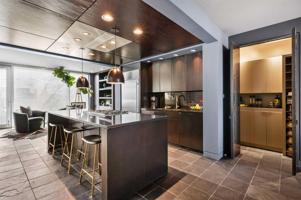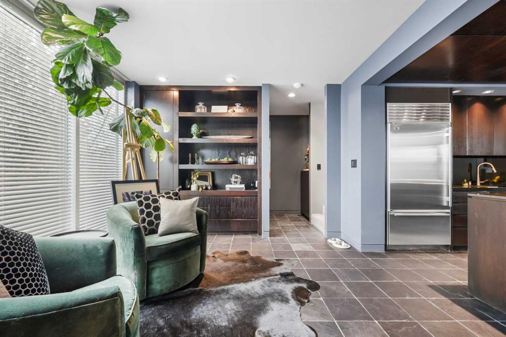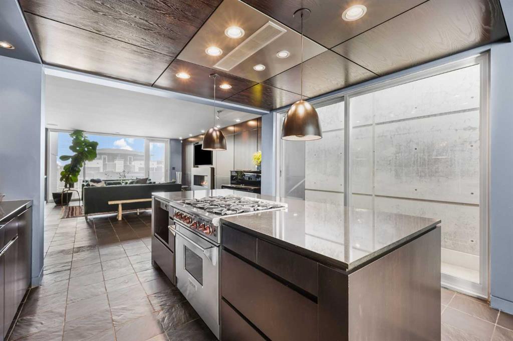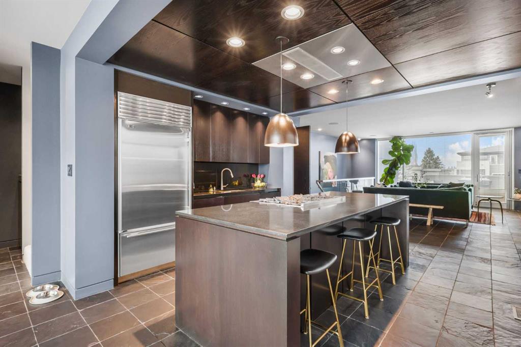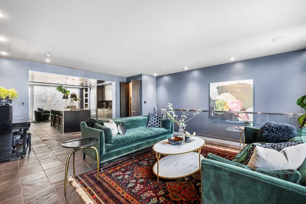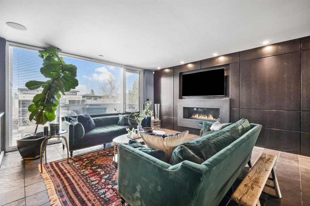 Impeccably positioned on a coveted street with unobstructed city and downtown views, this exceptional 2 bedroom residence with rare full concrete construction that is engineered for exceptional longevity, offers over 2,600 sq ft of luxurious living space. The main level is completely open from front to back, showcasing refinished tile flooring and custom millwork that frame a spacious living room with access to a private front terrace, all anchored by a striking gas fireplace. The sleek modern kitchen features granite countertops, a large island/eating bar, abundant storage including a walk in pantry, and stainless steel appliances. A dining room with built ins provides an elegant setting for hosting family and friends. A 2 piece powder room completes the main level. The top level, finished with new carpeting, is dedicated entirely to the primary retreat — a secluded oasis offering a massive bedroom with panoramic city, downtown, and mountain views, a dream walk in closet, and a tranquil sitting room. The ensuite is thoughtfully designed with two separate spaces: a serene area with a relaxing soaker tub, and a private 3 piece bath with an oversized shower. The lower level hosts a second bedroom with its own 3 piece ensuite, along with a dedicated laundry room with sink and storage. From here, enjoy direct access to the oversized single attached garage with a heated driveway. Additional highlights include central air conditioning, updated paint, new lighting and LED upgrades throughout, aluminum Hunter Douglas blinds, a new control panel and boiler pumps, and a new membrane roof. A north facing terrace offers the perfect vantage point for outdoor entertaining and warm summer evenings with stunning city and downtown views while a private south back patio is the perfect setting for relaxing afternoons soaking up the sun. This extraordinary home is ideally located near vibrant Marda Loop, excellent schools, shopping, public transit, and provides easy access to 26th Avenue, 14th Street, and Crowchild Trail.