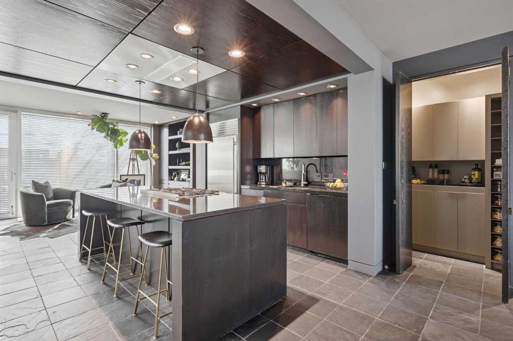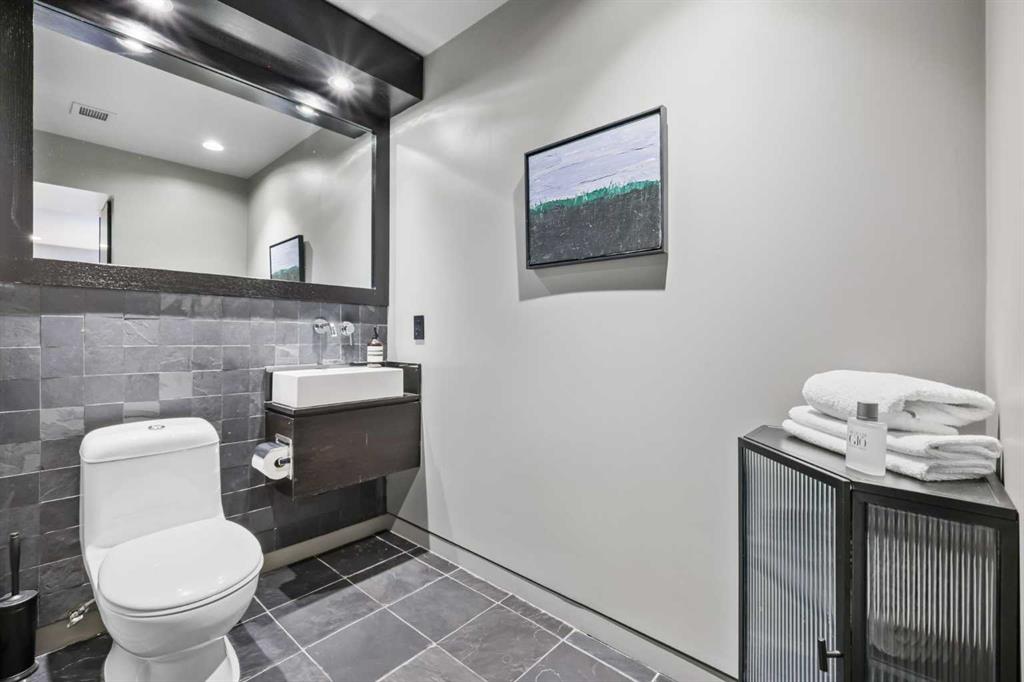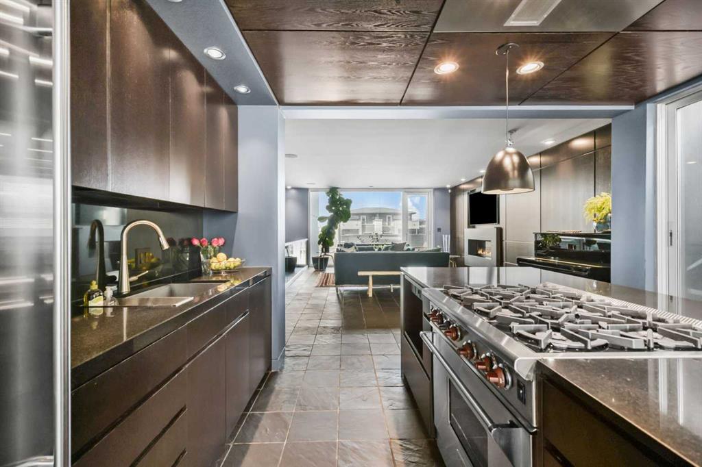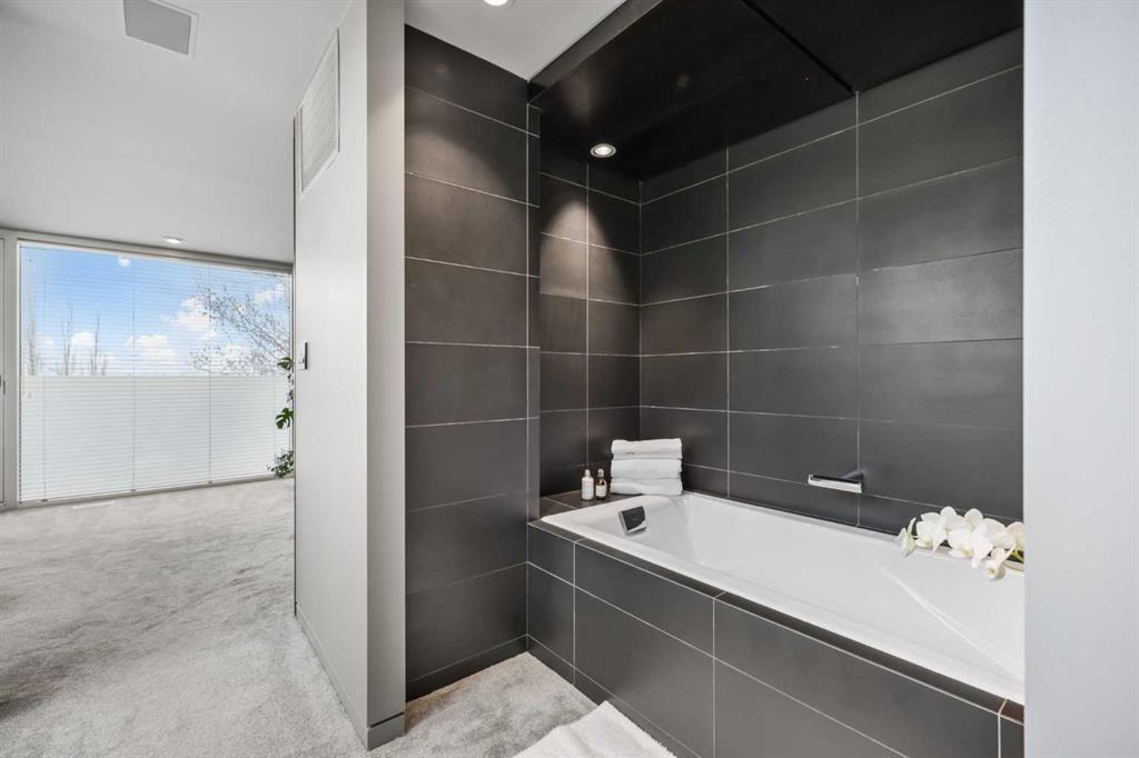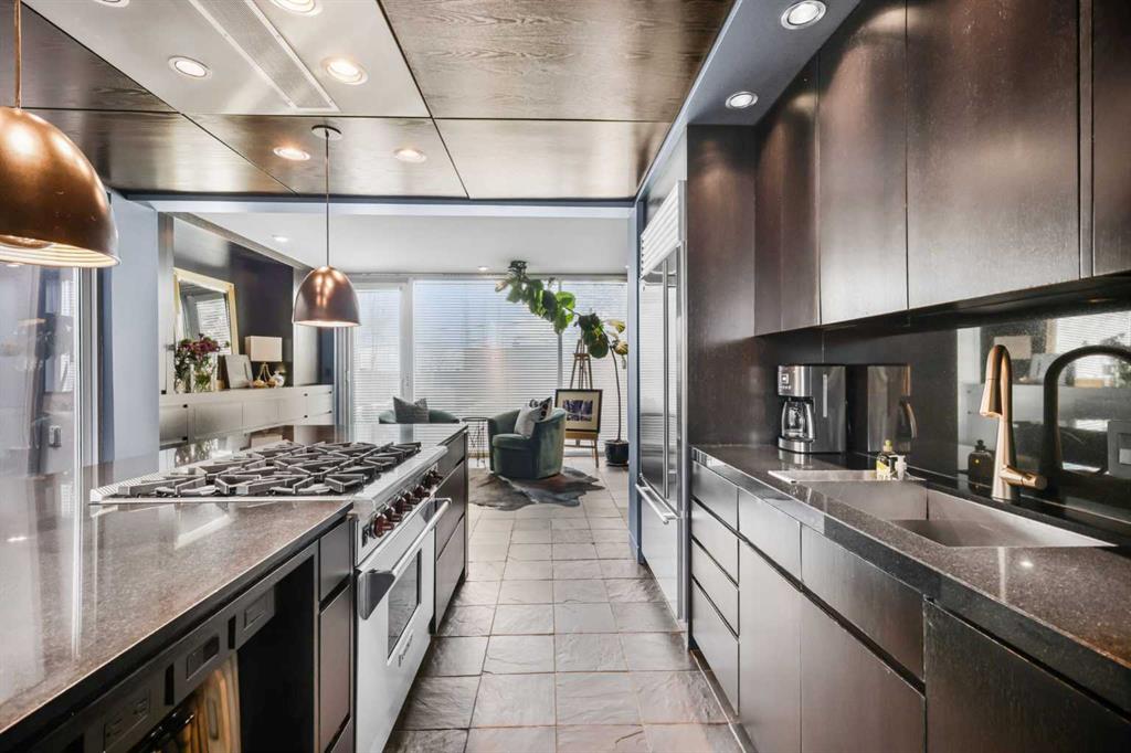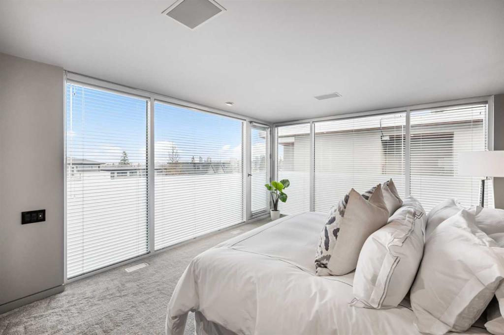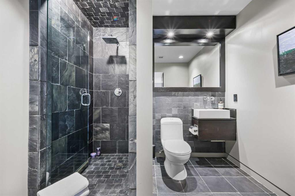 Impeccably positioned on a coveted street with unobstructed city and downtown views, this exceptional 2 bedroom residence with rare full concrete construction that is engineered for exceptional longevity, offers over 2,600 sq ft of luxurious living space. The main level is completely open from front to back, showcasing refinished tile flooring and custom millwork that frame a spacious living room with access to a private front terrace, all anchored by a striking gas fireplace. The sleek modern kitchen features granite countertops, a large island/eating bar, abundant storage including a walk in pantry, and stainless steel appliances. A dining room with built ins provides an elegant setting for hosting family and friends. A 2 piece powder room completes the main level. The top level, finished with new carpeting, is dedicated entirely to the primary retreat — a secluded oasis offering a massive bedroom with panoramic city, downtown, and mountain views, a dream walk in closet, and a tranquil sitting room. The ensuite is thoughtfully designed with two separate spaces: a serene area with a relaxing soaker tub, and a private 3 piece bath with an oversized shower. The lower level hosts a second bedroom with its own 3 piece ensuite, along with a dedicated laundry room with sink and storage. From here, enjoy direct access to the oversized single attached garage with a heated driveway. Additional highlights include central air conditioning, updated paint, new lighting and LED upgrades throughout, aluminum Hunter Douglas blinds, a new control panel and boiler pumps, and a new membrane roof. A north facing terrace offers the perfect vantage point for outdoor entertaining and warm summer evenings with stunning city and downtown views while a private south back patio is the perfect setting for relaxing afternoons soaking up the sun. This extraordinary home is ideally located near vibrant Marda Loop, excellent schools, shopping, public transit, and provides easy access to 26th Avenue, 14th Street, and Crowchild Trail.