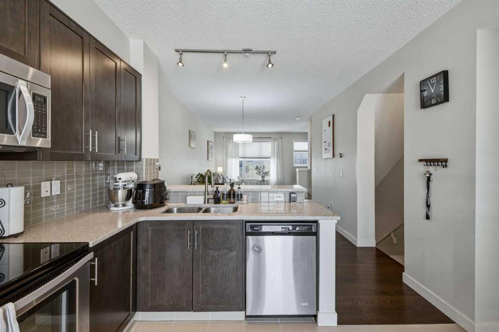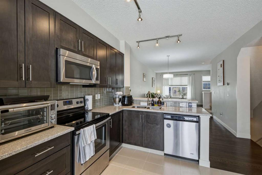Discover the perfect place to call home in this gorgeous 2-bedroom, 2.5-bathroom townhouse. With 1,301 sq. ft. of thoughtfully designed space, this property is an ideal fit for first-time buyers, savvy investors, or anyone looking for a fresh start in a vibrant community. From the moment you step inside, you’ll be welcomed by a spacious foyer and access to the double tandem garage. Heading upstairs, the main floor opens up to a stunning living space bathed in natural light. High ceilings and gleaming hardwood floors create an inviting atmosphere, while the open-concept layout connects the living, dining, and kitchen areas perfectly. The kitchen is a true highlight, featuring stainless steel appliances and a breakfast bar that overlooks the dining area. It opens directly onto your private balcony—the perfect spot for summer BBQs and relaxing evenings. Upstairs, you'll find two massive master bedrooms, each with its own private ensuite and large windows that continue the home’s theme of incredible natural light. With the added bonus of upper-floor laundry, daily living is made effortlessly convenient. Live the Best of NW Living: Nestled in a prime location, you're just steps from parks, playgrounds, and unbeatable amenities including Costco, Walmart, T&T Supermarket, and a variety of fantastic local shops and restaurants. This home is ready and waiting for you. Come see why it’s the one you’ve been looking for!