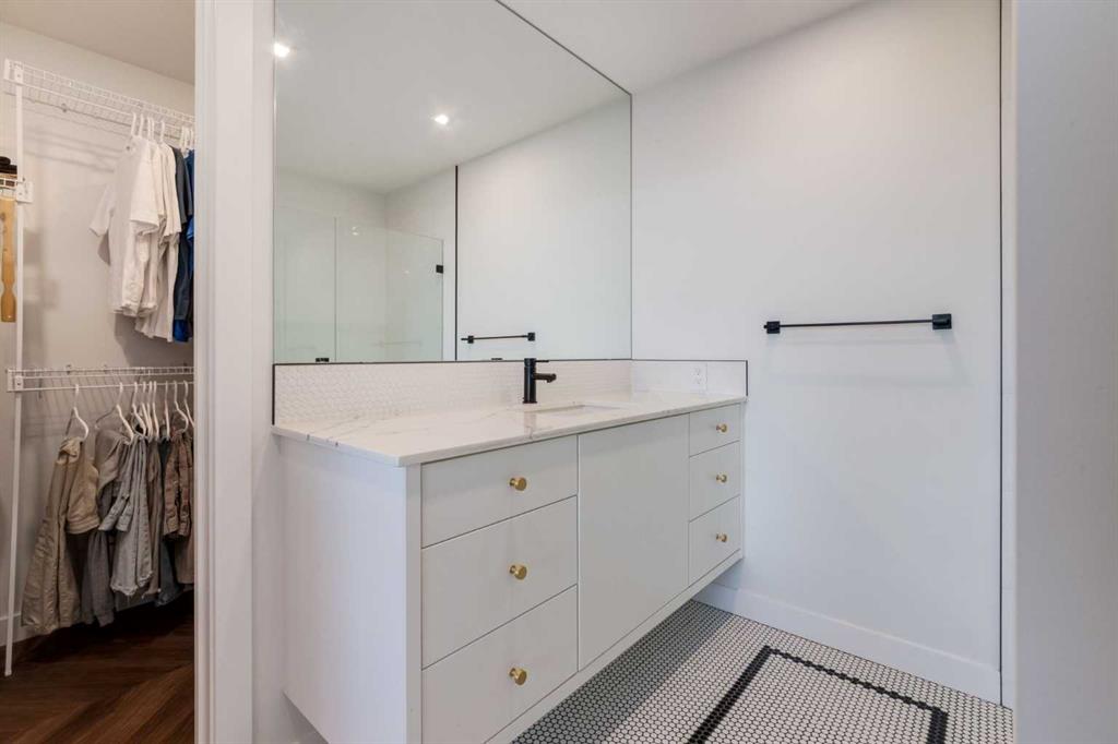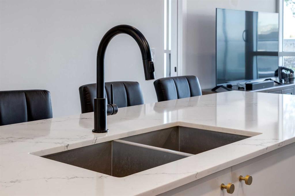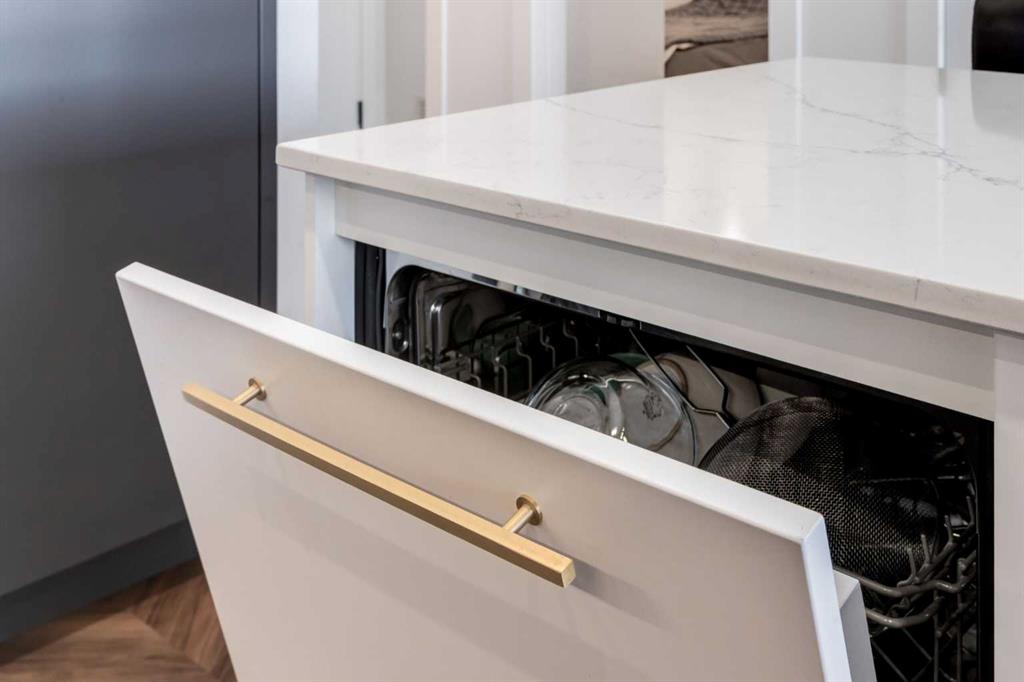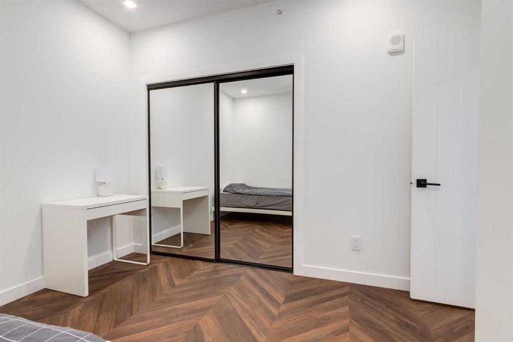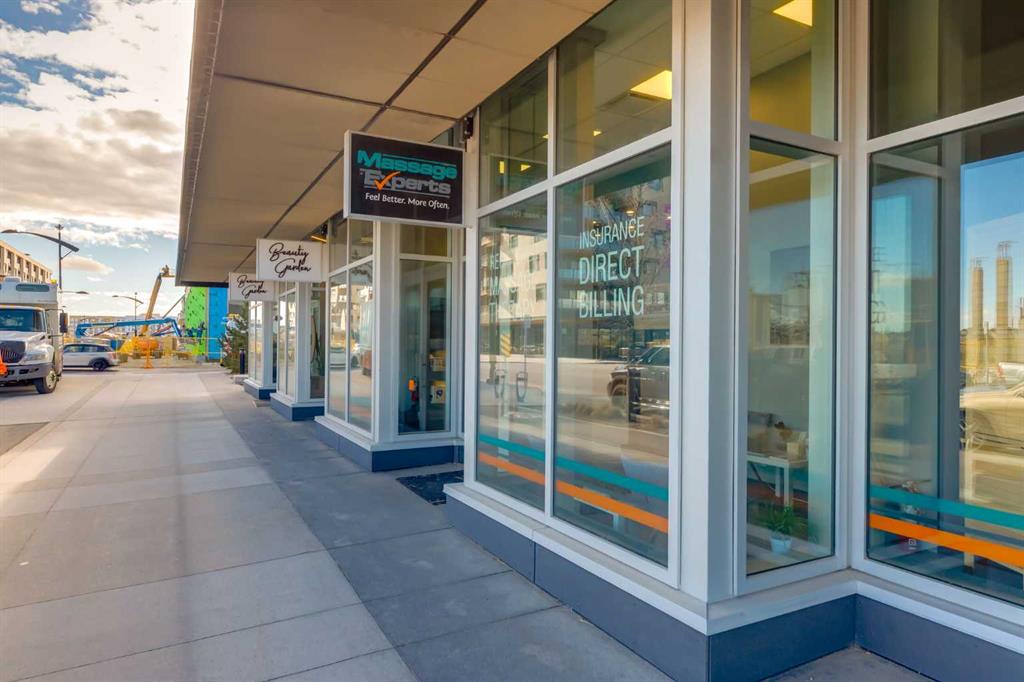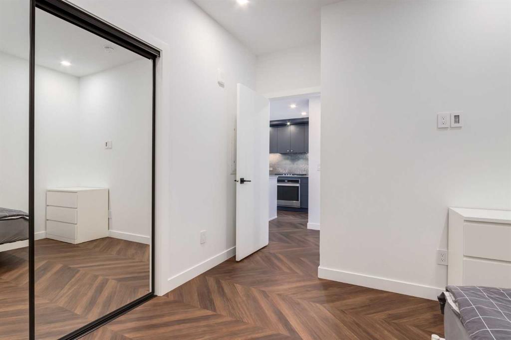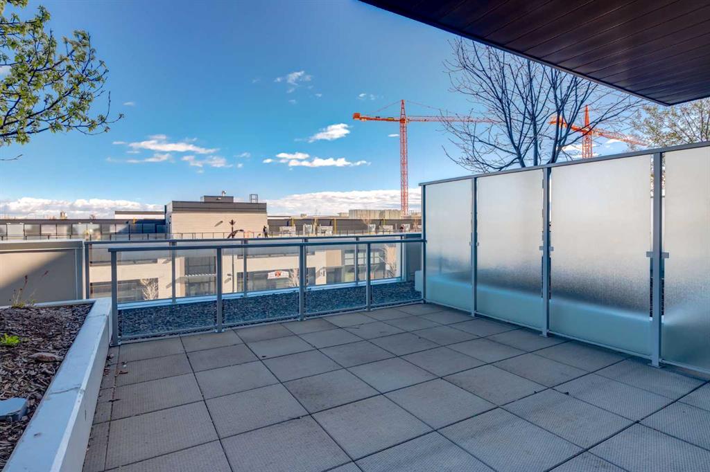 Priced to Sell! Welcome to Gateway by TRUMAN, nestled in the heart of the Master Planned community of West District. This concrete-constructed 2-bedroom, 2-bathroom home includes 1 titled underground parking stall and a spacious patio. Enjoy the pinnacle of craftsmanship and luxury with features like air conditioning, Chevron Luxury Wide plank flooring, and custom penny round mosaic tiles in all baths. LED pot lights illuminate the 9-foot+/- painted ceilings, enhancing the ambiance of the custom Chef-inspired kitchen. Finished in a luxurious Super Matte texture with brushed gold hardware, the kitchen boasts a high-end gas cooktop and wall oven, an integrated 36" Fisher & Paykel fridge, panelled dishwasher, and soft-close custom cabinetry with under-cabinet lighting. Quartz countertops and backsplash add a touch of sophistication. Additional features include a washer & dryer and window coverings for the floor-to-ceiling glass doors that lead to the expansive private patio. Located mere steps away from popular spots such as Hot Shop Yoga, Deville Coffee House, Hankki, La Diperie Ice Cream, Una, Blanco, and more! Gateway by TRUMAN offers a lifestyle of convenience and luxury in West District's thriving community.