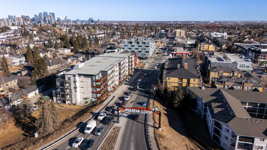 Located in Marda Loop—an iconic Calgary neighbourhood celebrated for its culture, connectivity, and charm—this move-in-ready condo delivers the lifestyle today’s buyers seek. Offering modern living at an approachable price point, this two-bedroom home places you steps from some of the city’s best cafés, boutiques, and everyday conveniences. The stunning main living area sets the tone with a cool, contemporary vibe anchored by a gas fireplace and filled with natural light from expansive west-facing windows. The open layout feels airy and inviting, extending seamlessly to a private, tree-lined balcony—an ideal spot to unwind in the evening or host casual gatherings. The modern kitchen complements the space with clean lines and thoughtful functionality, while a full bathroom, in-suite laundry, underground parking, and a storage locker add everyday ease. Situated in the Kabo complex, this home offers walkable access to everything Marda Loop has to offer, with the energy of 17th Avenue just minutes away. A refined opportunity in one of Calgary’s most desirable locations.