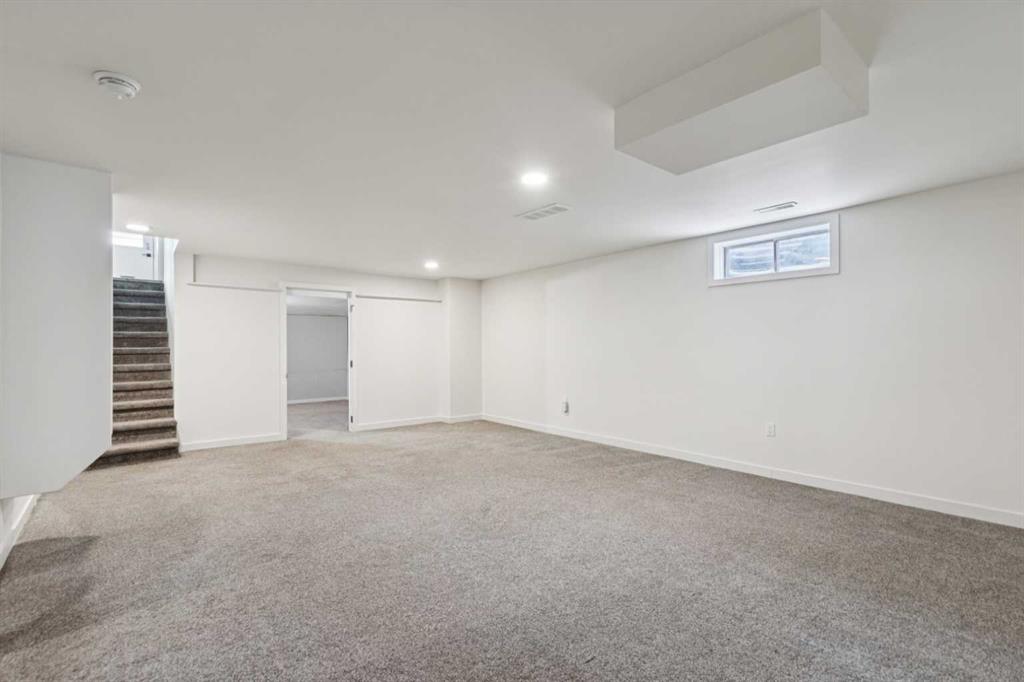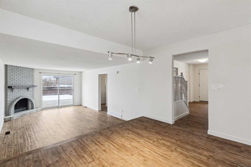 As you step into the home, you are greeted by a functional front entryway featuring a convenient closet for easy jacket and shoe storage. The foyer opens immediately into an expansive living room, where a large bay window floods the space with an abundance of natural light. The main floor transitions seamlessly into the open-concept dining area and kitchen, tied together by durable, vinyl-plank flooring. The modernized kitchen is a chef’s delight, showcasing a stylish two-toned cabinet design—crisp white uppers paired with deep blue lowers. This space is fully equipped with an electric cooktop, built-in double oven, and a sleek white refrigerator, all framed by elegant white quartz countertops and a subway tile backsplash. A unique multi-level design leads down to an additional living space, anchored by a classic brick-surround fireplace and sliding glass doors that provide direct access to the rear deck. Moving to the upper level, a classic white spindle staircase leads to the private bedrooms. The primary suite is notably spacious, easily accommodating a king-sized bed and complimented by a 3 pc ensuite, while the additional bedrooms feature large windows and updated closet doors, making them perfect for children’s rooms or a home office. These rooms share a clean, modern 4-piece bathroom with updated fixtures. The lower level offers even more versatility with a finished basement featuring plush carpeting, perfect for a media room or home gym. You'll also find a secondary room offering great flexibility for a home office or guest space. Outside, the property features a fully fenced backyard with a spacious deck, ideal for summer gatherings, leading to the detached garage for secure parking and extra storage. Benefits continue with a back gated fence perfect for RV storage! Located in the heart of the established community of Temple, this home is just minutes away from everything a family needs. You are within walking distance to multiple schools, including Annie Foote and Father Scollen, as well as local parks and the Temple Community Association. With quick access to Stoney Trail and McKnight Blvd, plus the nearby Village Square Leisure Centre and Sunridge Mall, this location perfectly balances quiet residential living with city convenience.