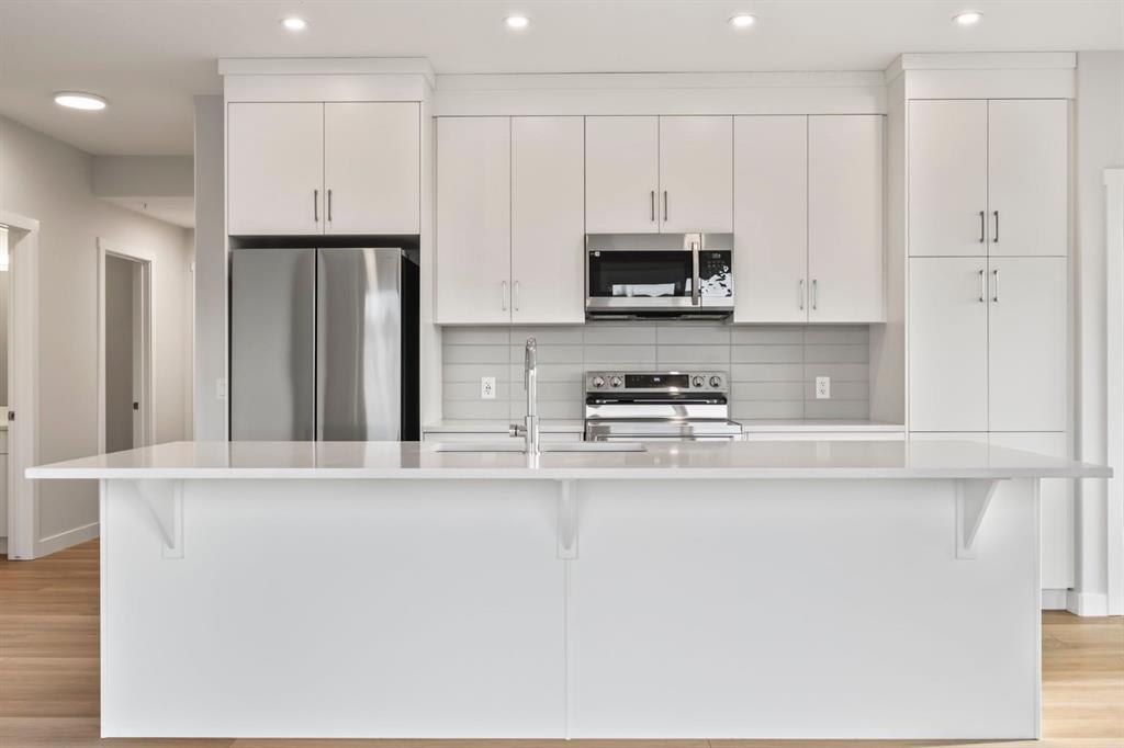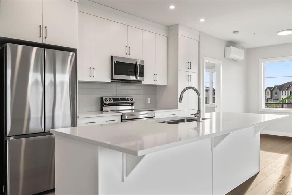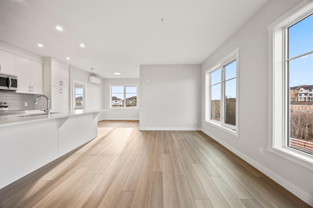Discover luxury condo living in one of Calgary’s most desirable southwest communities. This brand-new 2-bed plus den corner unit at The Whitney offers 1,066.60 sq.ft. of bright, open-concept living with a rare southwest exposure overlooking a peaceful protected green reserve. Enjoy natural light throughout the day, complete privacy, and a premium location just steps from scenic walking paths. Designed with upgraded finishes, this home features luxury vinyl plank flooring, upgraded kitchen details, stainless steel appliances, a spacious island, and a built-in air-conditioning unit. The functional layout includes two well-sized bedrooms, a full den ideal for a home office, two modern bathrooms, and a private balcony facing the treeline. Parking is convenient with a titled underground heated stall plus an additional storage locker. Built by Cove Properties—one of Calgary’s most respected multifamily builders known for exceptional craftsmanship. This unit is located in the prestigious Springbank Hill neighbourhood. You’re a short walk to Aspen Landing and just a 10-minute drive to downtown. A limited opportunity to own a luxury corner unit in a premium southwest community. Book your viewing today.