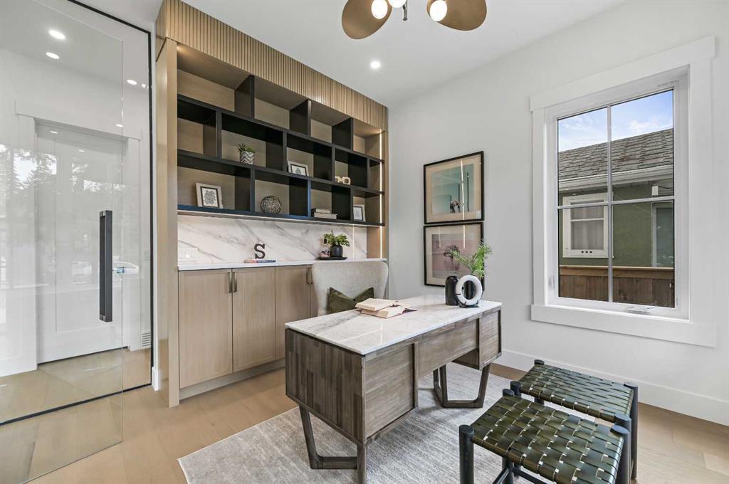 Sophisticated Luxury Living in Richmond Welcome to this exceptional single-family residence located in the highly sought-after community of Richmond. Thoughtfully designed with exquisite details and a functional layout, this home offers the perfect balance of modern elegance and everyday comfort. The main floor sets the tone with a grand open-to-below foyer that creates a striking first impression. A sleek glass-walled office provides the ideal space for working from home. The open-concept living area is perfect for entertaining, featuring a spacious living room, a gourmet kitchen with premium built-in JennAir appliances, a stylish dining area, a well-organized mudroom, and a convenient powder room. Upstairs, the luxurious primary suite is a true retreat, complete with a private coffee bar, a spa-inspired ensuite with a steam shower, and an expansive walk-in closet with a built-in makeup desk. A bonus room adds flexibility for family living, while two additional bedrooms—each with their own ensuite—provide comfort and privacy for everyone. A well-appointed laundry room completes the upper level. The fully finished basement expands the living space with an open recreation area, a dedicated games zone with a wet bar, a private gym, a spacious bedroom, and a full bathroom—perfect for guests and entertaining. Ideally situated in one of Calgary’s most desirable inner-city neighborhoods, this remarkable home combines luxury finishes with unparalleled convenience, just minutes from parks, schools, shopping, and downtown.