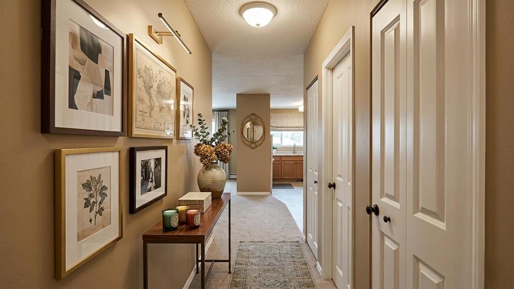 You’ll love this bright and spacious unit, perfectly situated in a quiet and convenient location near Elbow Drive and Heritage. This is the best located unit among the three buildings in The Chinook Garden. Sitting on the sofa in your large, west-facing living room, you can see the sky, huge and complete pine trees, the community, rooftops, and distant snow capped mountains. Both two bedrooms have south-facing windows, where the windows let in abundant natural light and even provide a clear view of your car—perfect for remote starting on chilly mornings. This unit is uniquely positioned at the westernmost side of the building, offering peace and quiet with no traffic noise from Elbow Drive, while still benefiting from a highly accessible location. Unlike many buildings, your private storage room is conveniently located right next door to your unit—no trips to the basement needed! Just minutes from Chinook Centre, Rockyview Hospital, Heritage Park, and only a 10-minute walk to the LRT. It only takes 8 minutes to drive to Costco, T & T Supermarket, Superstore, Walmart and IKEA. The designated schools for this house are the renowned Woodman Junior High School and the leading Henry Wise Wood High School. This unit is located in the middle of these two schools. It only takes 5 to 8 minutes to walk from here to these two schools respectively. This beautiful apartment is priced to sell – don’t miss out!