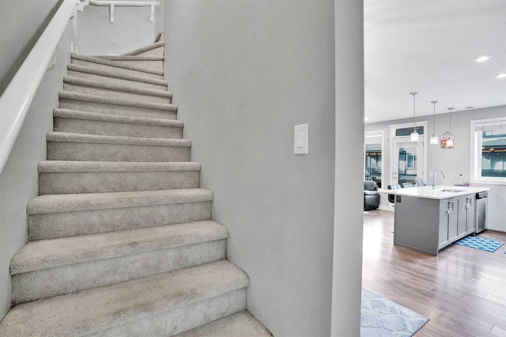 Attached Garage | 3-Bedrooms | 2.5 Bathrooms | Open Floor Plan | Quartz Countertops | Stainless Appliances | 2-Balconies. Welcome to this stunning and beautiful 3-storey, 3-bedroom townhouse with an open living space. The front door opens to a stairwell that leads directly up to the main living area on the 2nd floor. At the rear of the unit is a single attached garage with its own stairwell to the 2nd level. The main living area is an open floor plan kitchen, dining and living area. The kitchen is finished with quartz countertops, stainless steel appliances, ample cabinet space and barstool seating. The dining area is a good size, located just off the kitchen. The living room has plenty of large windows which let natural light fill the space. The door off the living room leads to the North facing balcony with a gas-line great for BBQing!. This level is complete with a 2pc bathroom. Head upstairs to find 3 great sized bedrooms, all with plush carpet flooring. The primary bedroom in the middle, has a private North Facing balcony as an added bonus! The main 4pc bathroom has a tub/shower combo and single vanity with storage below. The laundry room located on this upper level is an added convenience as it is located near all the bedrooms. This townhome is located in the popular neighborhood of Savanna with tons of shopping, walking paths, parks and playgrounds nearby! Hurry and book a showing at this incredible home today!