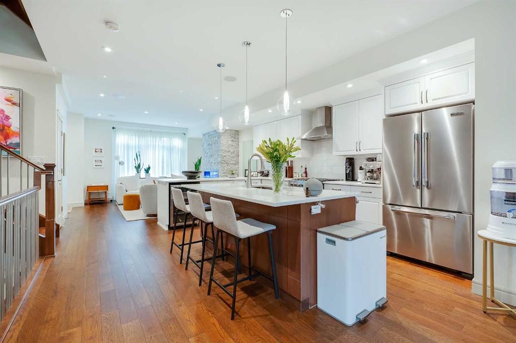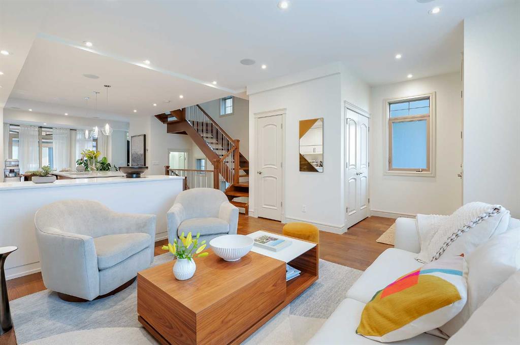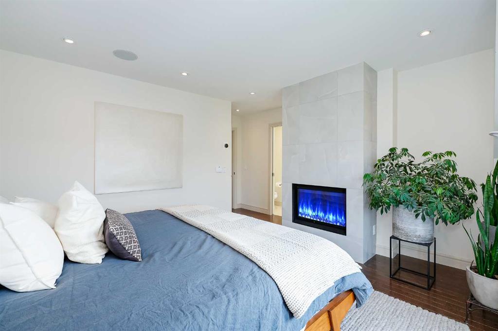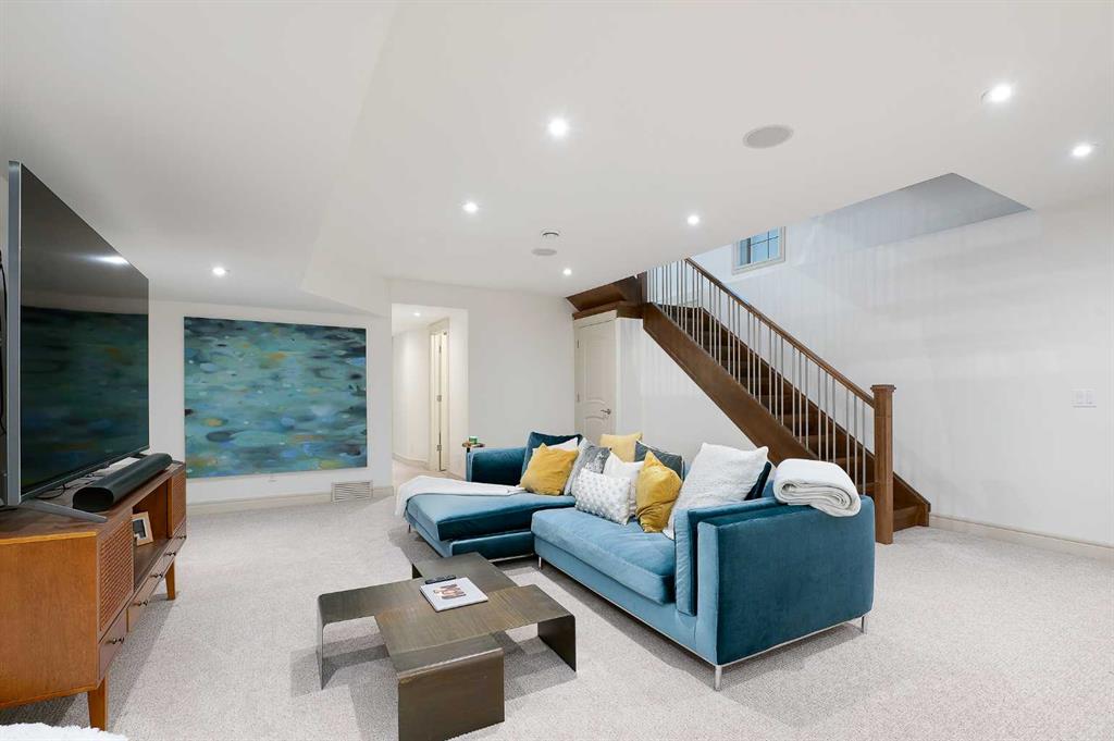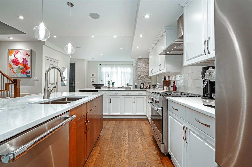 OPEN HOUSE SATURDAY, OCTOBER 11TH FROM 2-4 PM & SUNDAY, OCTOBER 12TH FROM 1-4 PM. Meticulously cared for & beautifully updated 3+2 bedroom home in the established community of Richmond, offering over 3400 sq ft of living space! The main level presents new hardwood flooring & high ceilings, showcasing the front living room anchored by a floor to ceiling fireplace that transitions to the refreshed kitchen, tastefully finished with new counter tops & island/eating bar with new light fixtures, freshly painted cabinets, new backsplash & stainless steel appliances. The dining area provides ample space to host family & friends. Completing the main level is a mudroom with California Closet coat area plus a 2 piece powder room. An open riser staircase leads to the second level that hosts 3 bedrooms, a 5 piece main bath & laundry room. The primary retreat with modernised fireplace & Juliet balcony boasts a walk-in closet & secluded 5 piece ensuite with dual vanities, relaxing soaker tub & rejuvenating steam shower. The third level with vaulted ceiling is a great entertaining space featuring a large family/media room with fireplace & balcony access, wetbar & 2 piece bath. Basement development includes new carpet, huge recreation room with California Closet built-ins, two additional bedrooms, 3 piece bath, wine cellar & plenty of storage. Other notable features include fresh paint throughout, central air conditioning & built-in speakers throughout. Outside, enjoy the lovely front garden with patio & sunny south back yard with patio that can be shelered by an awning. Parking is effortless with a double detached garage. The location is incredibly convenient, steps to 2 parks & close to schools, shopping, public transit & easy access to Crowchild Trail. Immediate possession is available!