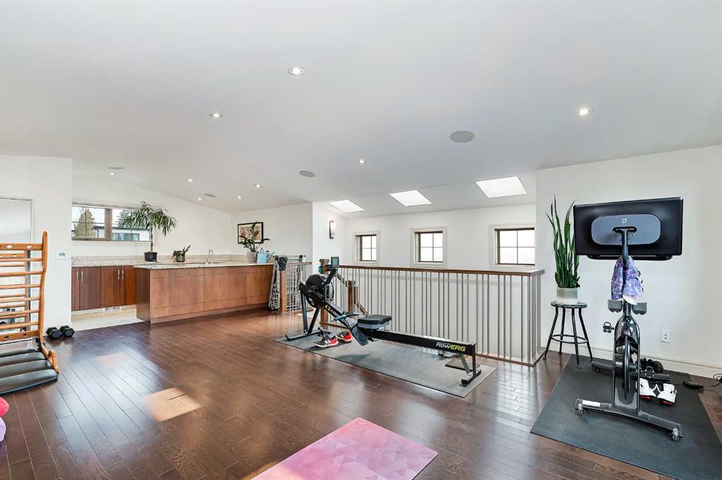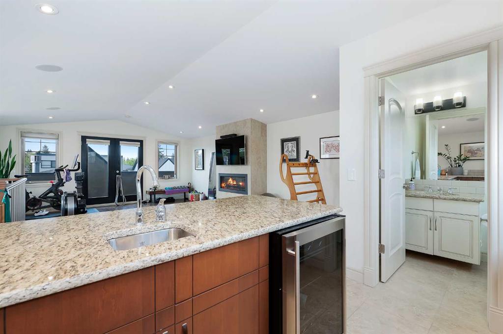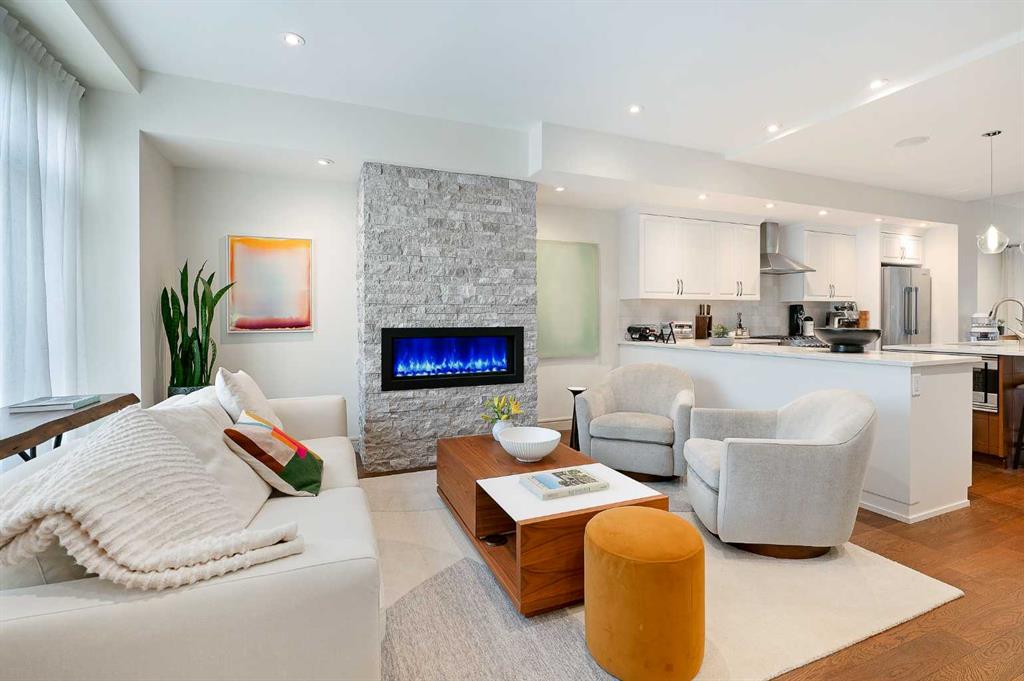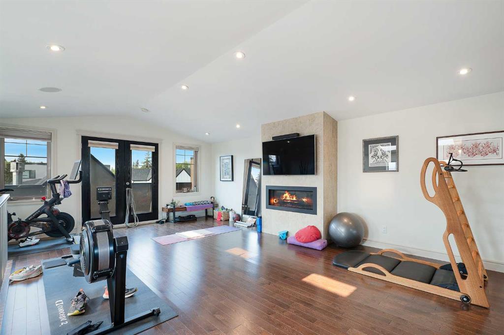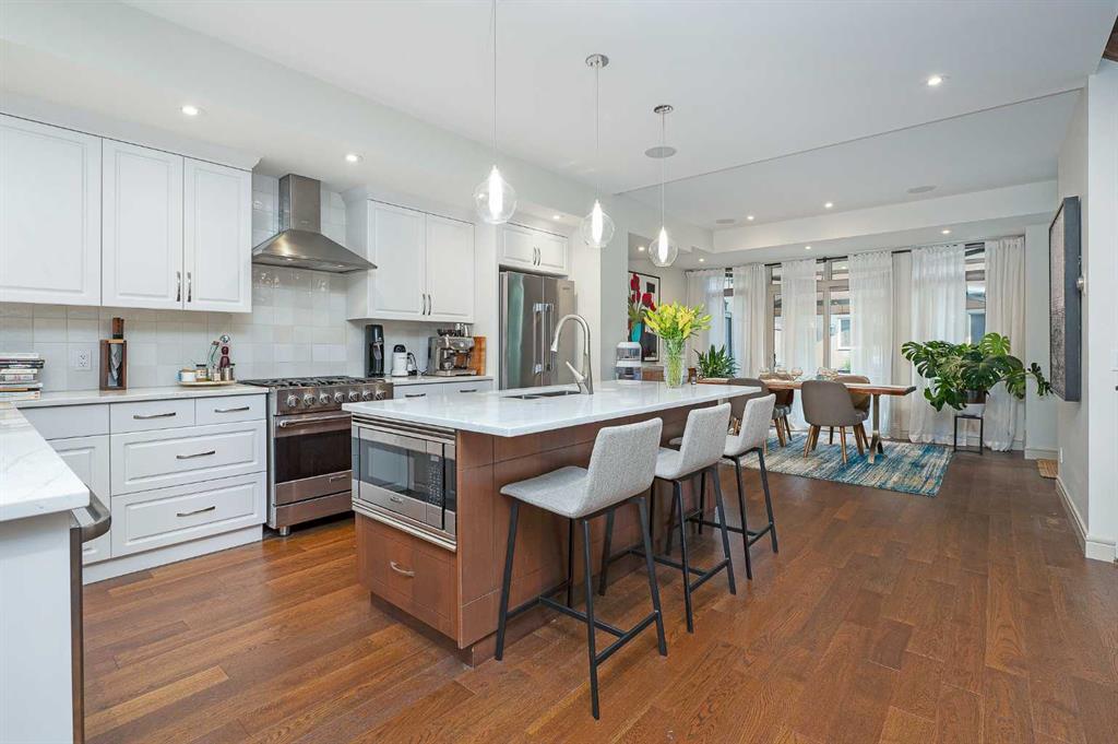 OPEN HOUSE SATURDAY, OCTOBER 11TH FROM 2-4 PM & SUNDAY, OCTOBER 12TH FROM 1-4 PM. Meticulously cared for & beautifully updated 3+2 bedroom home in the established community of Richmond, offering over 3400 sq ft of living space! The main level presents new hardwood flooring & high ceilings, showcasing the front living room anchored by a floor to ceiling fireplace that transitions to the refreshed kitchen, tastefully finished with new counter tops & island/eating bar with new light fixtures, freshly painted cabinets, new backsplash & stainless steel appliances. The dining area provides ample space to host family & friends. Completing the main level is a mudroom with California Closet coat area plus a 2 piece powder room. An open riser staircase leads to the second level that hosts 3 bedrooms, a 5 piece main bath & laundry room. The primary retreat with modernised fireplace & Juliet balcony boasts a walk-in closet & secluded 5 piece ensuite with dual vanities, relaxing soaker tub & rejuvenating steam shower. The third level with vaulted ceiling is a great entertaining space featuring a large family/media room with fireplace & balcony access, wetbar & 2 piece bath. Basement development includes new carpet, huge recreation room with California Closet built-ins, two additional bedrooms, 3 piece bath, wine cellar & plenty of storage. Other notable features include fresh paint throughout, central air conditioning & built-in speakers throughout. Outside, enjoy the lovely front garden with patio & sunny south back yard with patio that can be shelered by an awning. Parking is effortless with a double detached garage. The location is incredibly convenient, steps to 2 parks & close to schools, shopping, public transit & easy access to Crowchild Trail. Immediate possession is available!