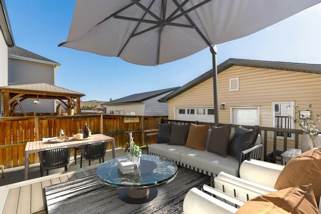Welcome to this beautifully designed home in the family-friendly community of Copperfield—a neighbourhood known for its parks, greenspaces, and established schools. Inside, you’ll find a modern open-concept floorplan with stylish finishes throughout. The front living room features a cozy fireplace, while the back kitchen offers a large eat-up island, granite countertops, ample cabinetry, and a spacious pantry—perfect for both everyday living and entertaining. Stay cool in the warmer months as this home also features central air conditioning Upstairs, there are three generous bedrooms, including a primary suite with a large walk-in closet and a 4-piece ensuite. Also, upper floor laundry for your convenience. This property also features a rare oversized, insulated, and heated garage, complete with 240V power—perfect for heavy tools, a workshop, or future EV charging. It even includes a second front-facing garage door, making it easy to open up for convenience or for hosting unforgettable gatherings. Enjoy the sunny backyard with its large composite deck and poured concrete patio—perfect for gatherings. This home perfectly blends comfort, functionality, and style—a true gem in one of Calgary’s most beloved communities.