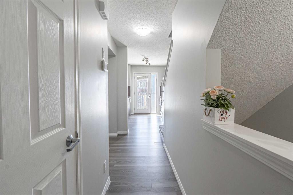 Welcome to this stylish and thoughtfully designed townhome in the vibrant community of Cityscape perfect for first time buyers, investors or anyone looking for low maintenance living with great value. Built in 2014 and offering low condo fees, this home features a smart three level layout that maximizes space and functionality. The entry level provides convenient access to the attached single garage, along with a dedicated laundry and utility area tucked away for added privacy. The second floor opens up to a bright and inviting living space with large windows and soaring ceilings. The open concept layout seamlessly connects the living and dining areas, making it ideal for both everyday living and entertaining. The kitchen comes equipped with stainless steel appliances, ample cabinetry and a breakfast bar for casual dining. Step out onto the private balcony perfect for enjoying your morning coffee or evening unwind. Upstairs, you will find two generously sized bedrooms, including a comfortable primary retreat with a walk in closet. A full 3 piece bathroom and an additional 2 piece bath on the main living level add to the home’s convenience. With parking for two vehicles (garage + driveway) and a location close to parks, shopping, public transit and major routes, this home offers both comfort and accessibility. A fantastic opportunity to own in a growing and family friendly neighborhood, book your showing today