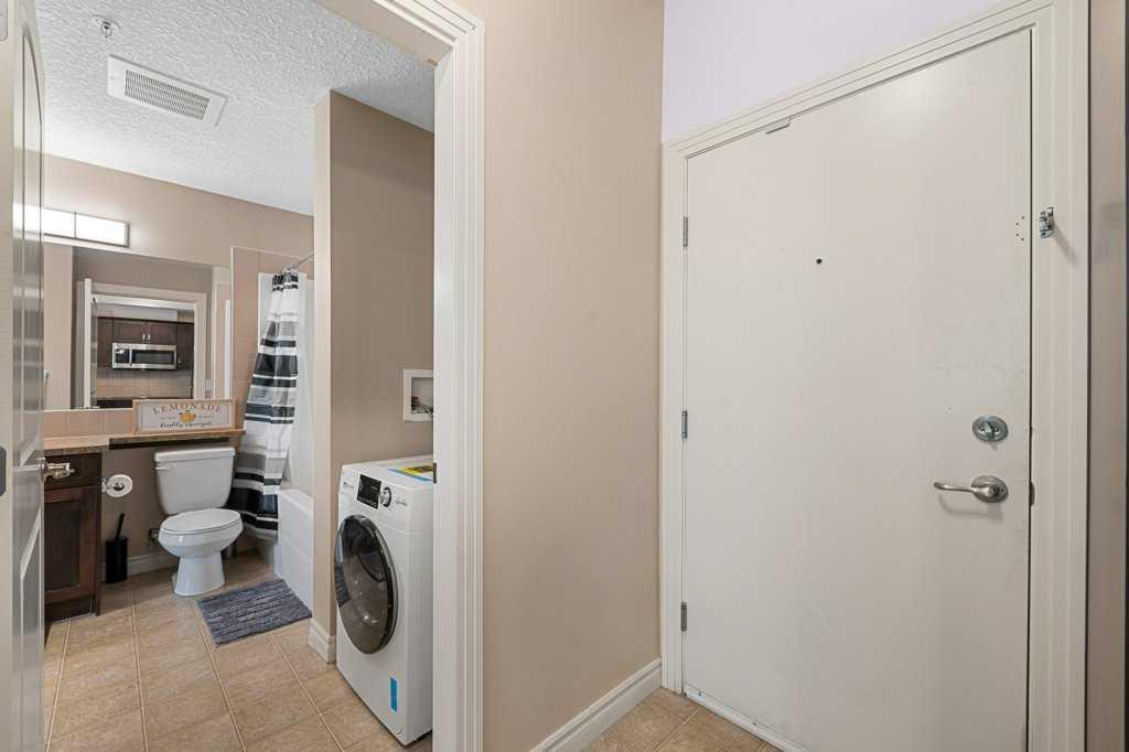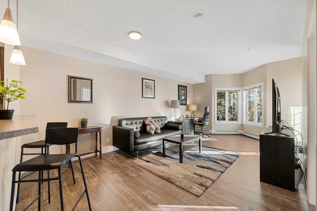 Set on the second floor of Building 60 at Red Haus, this bright, south-facing one-bedroom overlooks a beautiful courtyard and feels instantly welcoming. Laminate flooring flows through the living room and bedroom, while the kitchen shines with maple cabinetry and a raised breakfast bar. The open-concept living/dining area is flooded with natural light and includes a versatile flex nook—perfect for a desk, bookcase, or hutch. The spacious bedroom offers a walk-through closet to a 4-piece bathroom, and the in-suite laundry features a newer washer/dryer. Step out to the private balcony for morning coffee or evening downtime. Practical perks include titled, heated underground parking and a titled storage locker. Condo fees cover heat and water; only electricity and internet are extra. Residents enjoy the on-site Club Haus for fitness and social gatherings. Loved for its European-inspired design, Red Haus sits next to Royal Oak Centre (groceries, cafés, and daily essentials), with quick access to Stoney Trail and an easy bus ride to the Tuscany/Royal Oak LRT. Dont miss this great unit!