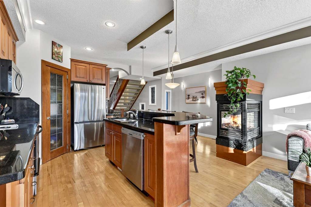 Ideally situated on a quiet, tree-lined street in the heart of Killarney, this well-maintained 4-bedroom, 3.5-bathroom detached home offers a functional layout with thoughtful improvements throughout. The main floor boasts a bright living room and a spacious dining area with large west-facing windows showcasing mature trees and filling the space with warm afternoon and evening light. The kitchen is equipped with granite countertops, stainless steel appliances, and an island that seamlessly flows into a cozy eat-in nook. An adjoining family room opens to the rear deck, offering easy indoor-outdoor living and a gas three-way fireplace connects the nook, kitchen and family room. Upstairs, the primary retreat features vaulted ceilings, a walk-in closet, private balcony, and an ensuite with a soaker tub and fireplace. Completing the upper level are two additional bedrooms, a full bathroom, and a convenient built-in computer desk at the top of the stairs - ideal for a home office or homework station. The fully developed basement includes a large family or media room with bright windows, a fourth bedroom, another full bathroom, a dedicated laundry room, and extra storage. Recent upgrades include a new furnace (2024), brand-new washer and dryer, fresh paint throughout, and more. Central air conditioning adds to the home’s year-round comfort and convenience. Outside, enjoy a resodded yard with updated landscaping and a double detached garage. Walk to convenient favourites like Luke’s Drug Mart for your morning coffee or a summer soft serve, along with so many restaurants and local eateries just steps from your door. Enjoy the endless potential Killarney offers, all just minutes from parks, schools, and convenient inner-city amenities.