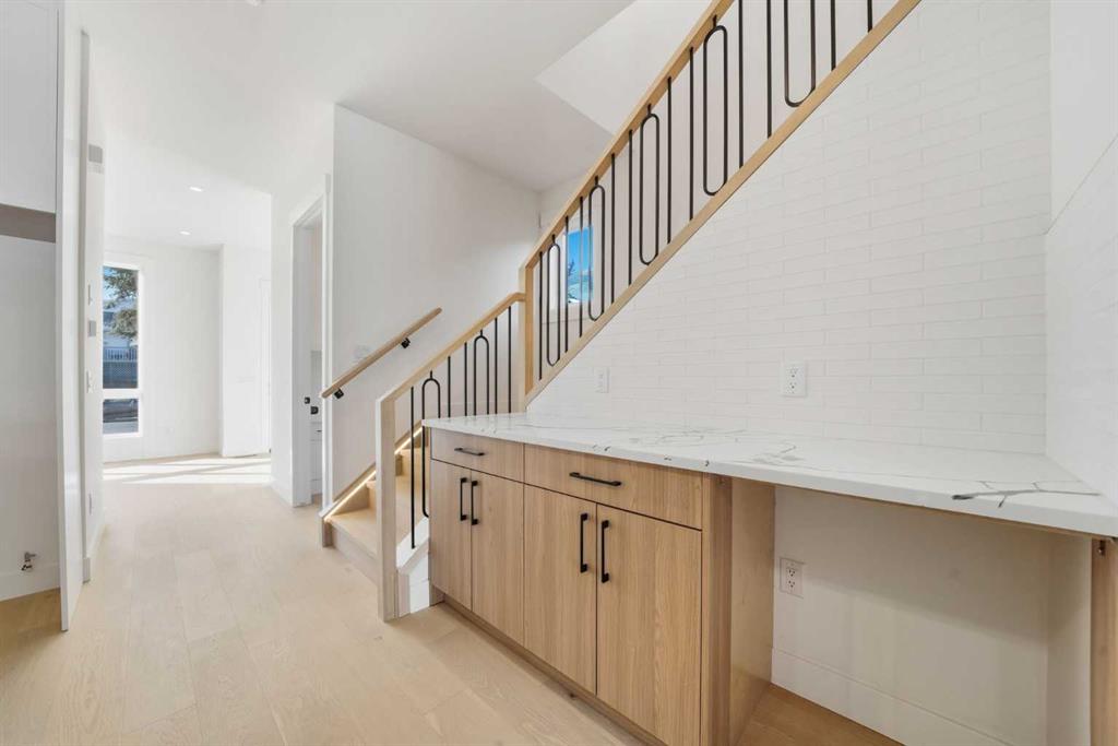 Gorgeous new 3 bedroom home built by Royal Design Homes on a quiet cul-de-sac in sought after Richmond, offering over 2000 sq ft of living space plus a self contained legal 2 bedroom basement suite. The bright & airy main level presents engineered hardwood floors, high ceilings & stylish light fixtures, showcasing the front dining area with beautiful feature wall & ample space to host family & friends. Create culinary masterpieces in the kitchen that’s tastefully finished with contrasting quartz counter tops, large island/eating bar, excellent appliance package & plenty of storage space, including a pantry & lovely built-in banquette. The living room is anchored by a floor to ceiling feature fireplace & built-ins. A cozy office space is tucked away just off the kitchen, perfect for a home office setup. Completing the main level is a convenient mudroom with bench, hooks & storage & a 2 piece powder room with wall paper accent & raised stone sink. Ascend the lighted staircase to the second level that hosts a loft/bonus room, 2 bedrooms, 4 piece bath & laundry room with sink & storage. The primary bedroom with vaulted ceiling boasts an outstanding walk-in closet & posh 5 piece ensuite with dual sinks, make-up vanity, relaxing freestanding soaker tub & rejuvenating steam shower. The fully contained legal basement suite features engineered hardwood floors, a large living/dining area with tons of built-in storage, kitchen with island/eating bar, quartz counter tops & stainless steel appliances. Two bedrooms, a 4 piece bath & dedicated laundry facilities complete the legal basement suite. Other notable features include roughed in air conditioning & 2 furnaces. Outside, enjoy the beautifully landscaped front garden & back yard with deck & access to a double detached garage. The location is incredibly convenient, close to vibrant Marda Loop, excellent schools, parks, public transit & easy access to 26th Avenue & Crowchild Trail.