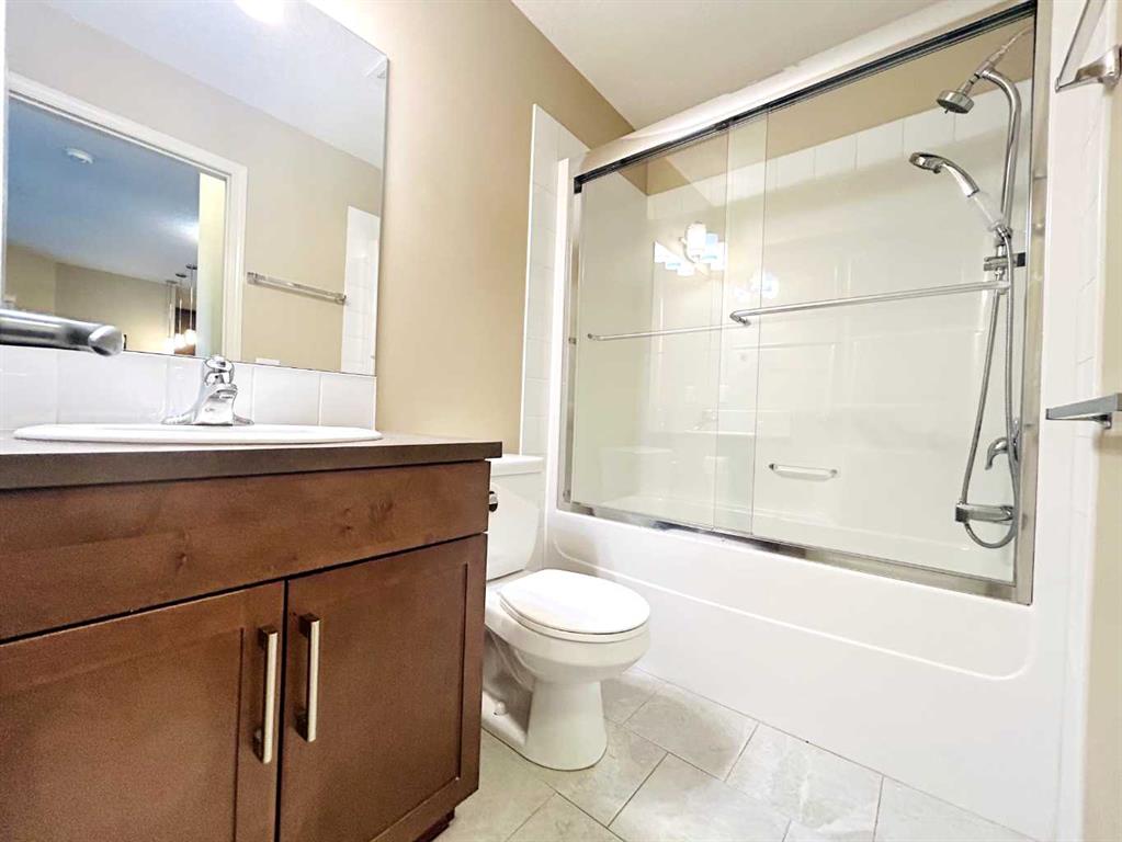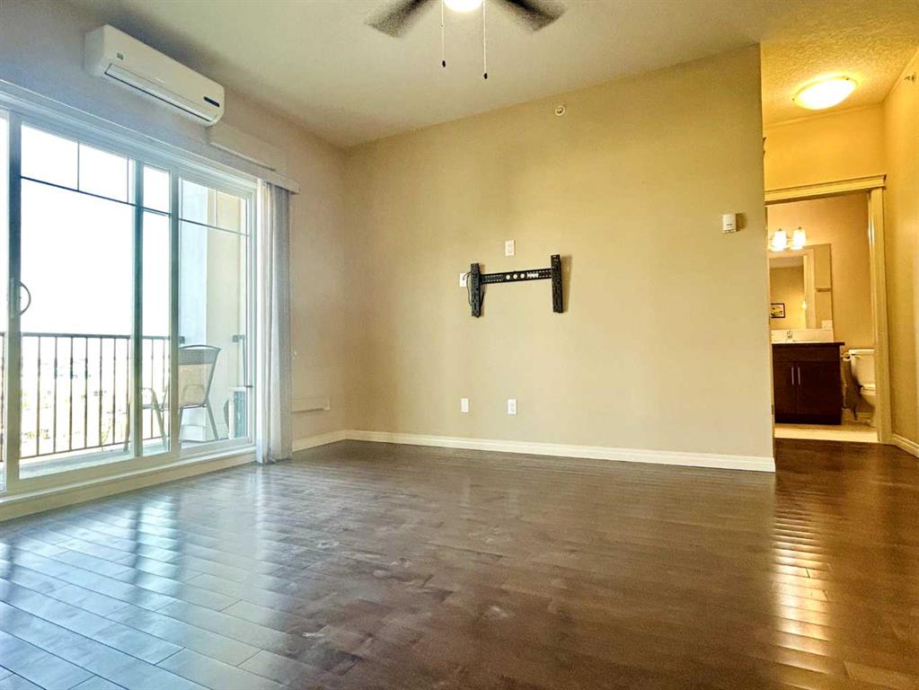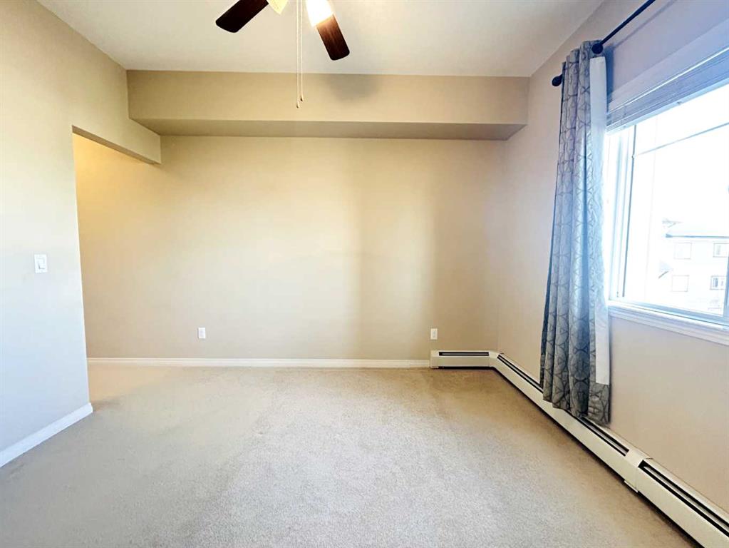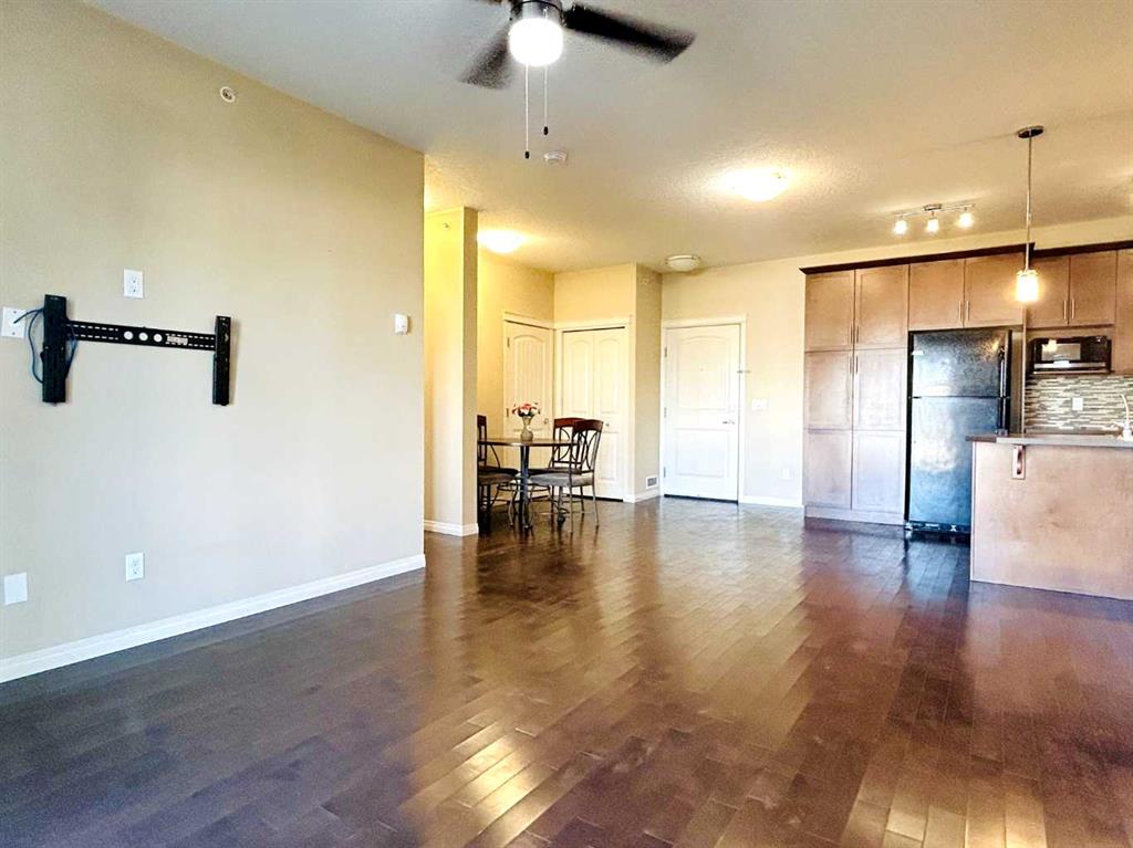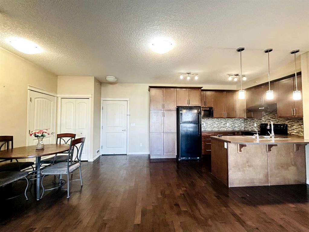 This well-maintained top-floor unit showcases true pride of ownership and features 9-foot ceilings and a highly functional layout. This spacious 2-bedroom, 2-bathroom condo offers numerous upgrades, including air conditioning, gleaming maple hardwood flooring, and extended maple kitchen cabinetry. The open-concept kitchen is enhanced with a newer backsplash, ample counter space, and a convenient eating bar. The main living area features beautiful maple hardwood floors in immaculate condition and a bright, generously sized living room with direct access to a private balcony offering open views. The primary bedroom includes a good-sized layout with a 3-piece ensuite, while the second bedroom is complemented by a full 4-piece main bathroom. The unit also features in-suite laundry for added convenience. This condo comes with an assigned underground heated parking stall and additional storage space. Ideally located in the heart of Panorama Hills, you are within walking distance to schools, Save-On-Foods, banks, parks, and pond areas, with easy access to public transit, Stoney Trail, and Deerfoot Trail. A rare opportunity to own a top-floor unit in a highly desirable community!