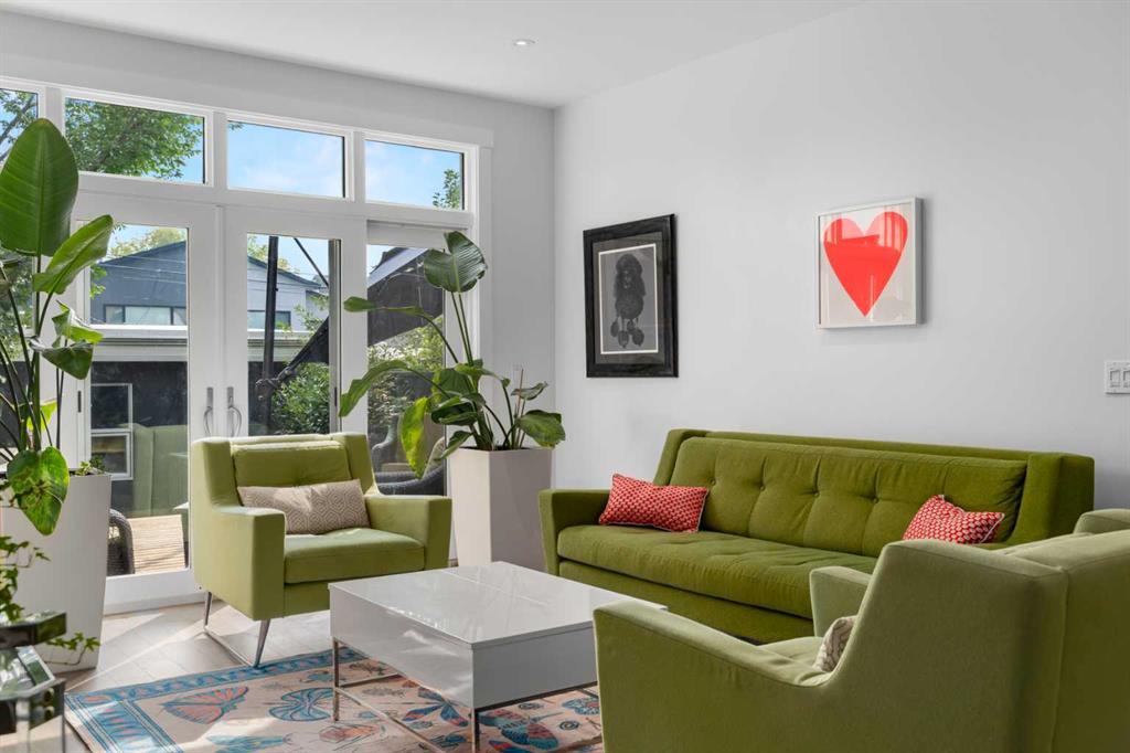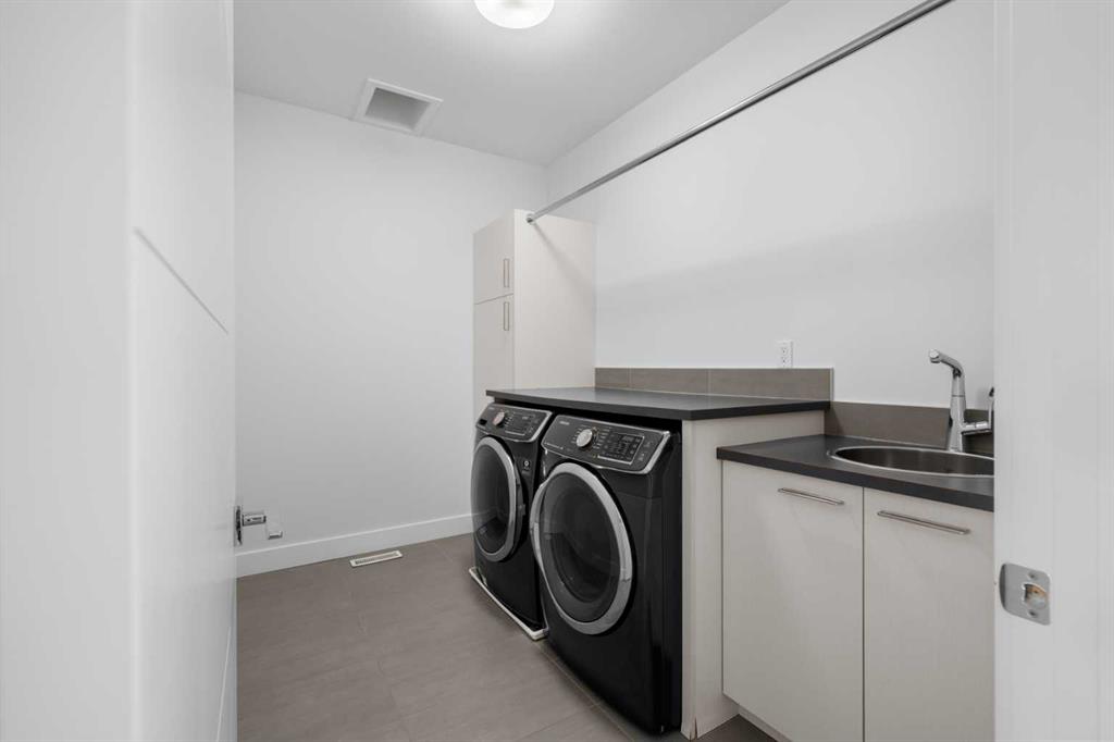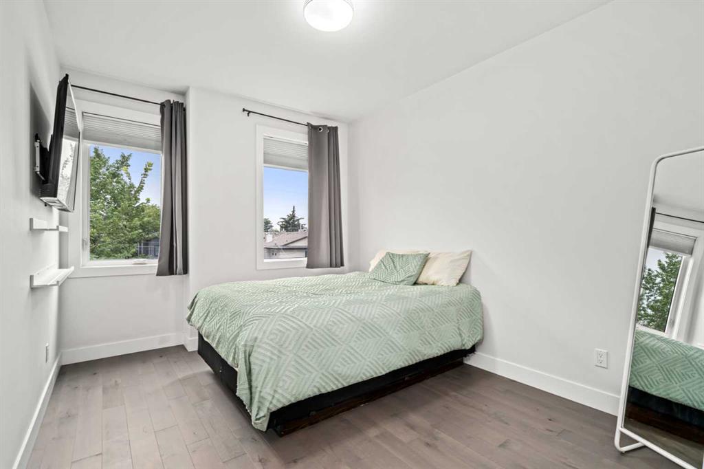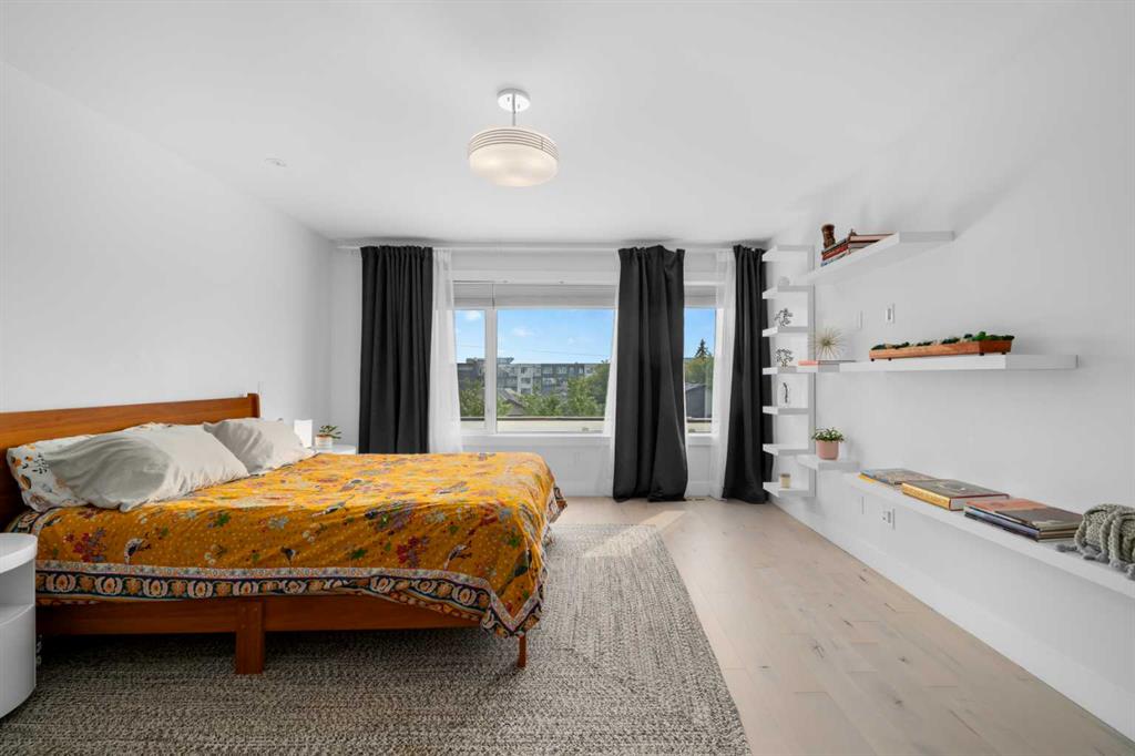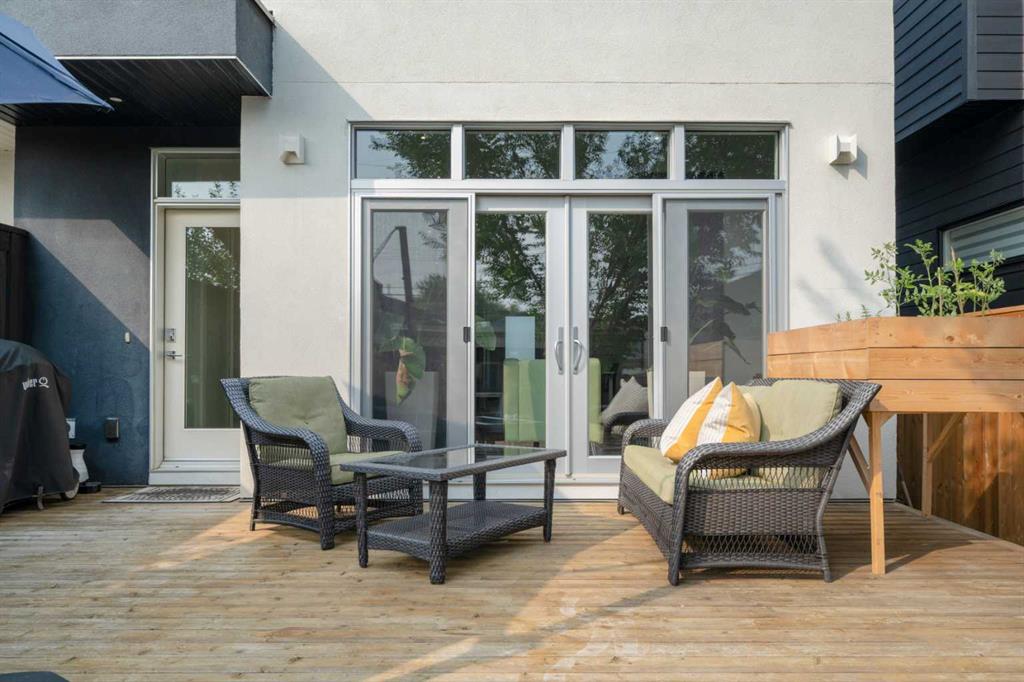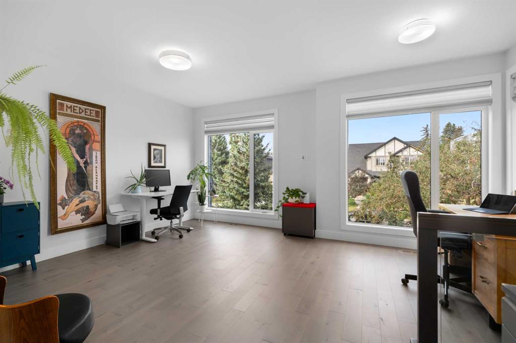 This stunning home is situated on a 25x125 south-facing lot in the heart of desirable Marda Loop, this extensively upgraded 3-storey semi-detached home offers over 3,500 sq. ft. of air-conditioned living space. Designed with style and functionality in mind, this property is just a short walk to trendy 33rd Ave, and a quick drive or bike ride to River Park, Sandy Beach, and the Elbow River. The main floor boasts 10’ ceilings, wide plank engineered oak hardwood, and a bright open layout. The chef-inspired kitchen features an expansive island, quartz countertops, modern custom cabinetry, walk-in pantry, Viking 6-burner gas stove with chimney hood fan, built-in stainless steel appliances, and a Samsung double door fridge. A spacious dining area, front family room, stylish powder room, and a light-filled living room with floor-to-ceiling windows, gas fireplace, rear mudroom and French doors to the deck and backyard complete this level. Upstairs, the 2nd floor offers a bonus room, two bedrooms (one with private ensuite), a 4-piece bath, and a full laundry room with sink and cabinetry. The entire 3rd floor is a private primary retreat with a large bedroom with blackout blinds, private balcony with views, a dream walk-in closet with custom organizers and drawers, and a spa-like ensuite with heated floors, dual vanity, soaker tub, and custom glass steam shower with rain head and bench. The fully finished basement features radiant in-floor heating, a large rec room, home gym with rubber flooring, wet bar with beverage fridge, 4th bedroom with walk-in closet, and a 3-piece bathroom. Other highlights include: custom lighting, open riser staircase with glass panels, Hunter Douglas blinds, CAT5E wiring, zoned A/C, water softener, 75-gallon hot water tank, tankless water heater, and on-demand hot water. Enjoy the south-facing backyard with large deck, turf green space, concrete walkway, and a double detached garage. With excellent walkability, quick access to Crowchild Trail, and all the amenities of Marda Loop at your doorstep, this property truly is the total package.