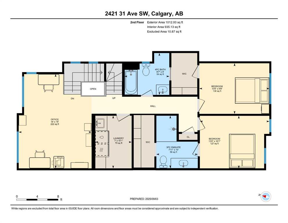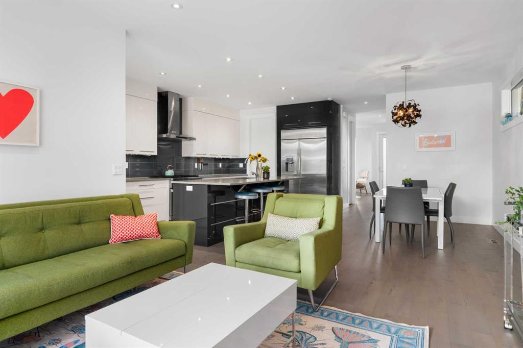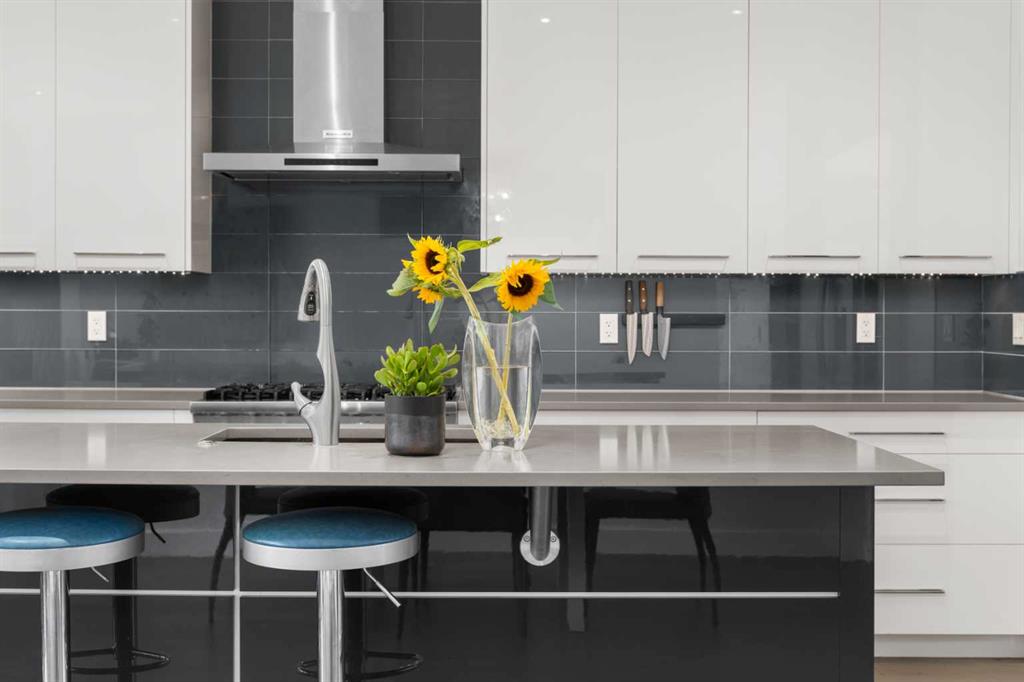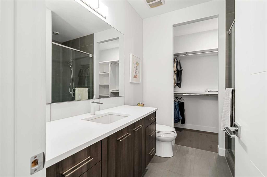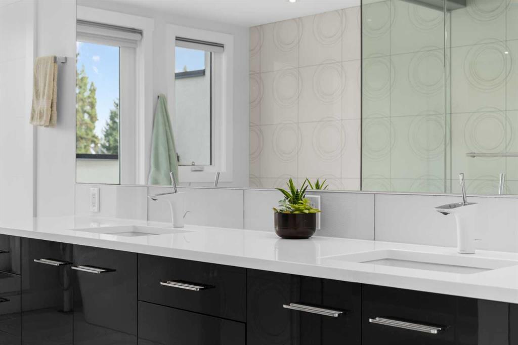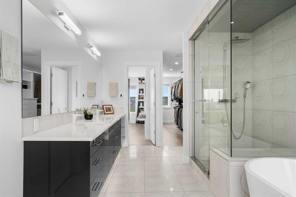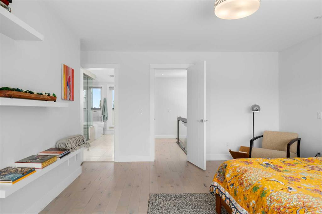 This stunning home is situated on a 25x125 south-facing lot in the heart of desirable Marda Loop, this extensively upgraded 3-storey semi-detached home offers over 3,500 sq. ft. of air-conditioned living space. Designed with style and functionality in mind, this property is just a short walk to trendy 33rd Ave, and a quick drive or bike ride to River Park, Sandy Beach, and the Elbow River. The main floor boasts 10’ ceilings, wide plank engineered oak hardwood, and a bright open layout. The chef-inspired kitchen features an expansive island, quartz countertops, modern custom cabinetry, walk-in pantry, Viking 6-burner gas stove with chimney hood fan, built-in stainless steel appliances, and a Samsung double door fridge. A spacious dining area, front family room, stylish powder room, and a light-filled living room with floor-to-ceiling windows, gas fireplace, rear mudroom and French doors to the deck and backyard complete this level. Upstairs, the 2nd floor offers a bonus room, two bedrooms (one with private ensuite), a 4-piece bath, and a full laundry room with sink and cabinetry. The entire 3rd floor is a private primary retreat with a large bedroom with blackout blinds, private balcony with views, a dream walk-in closet with custom organizers and drawers, and a spa-like ensuite with heated floors, dual vanity, soaker tub, and custom glass steam shower with rain head and bench. The fully finished basement features radiant in-floor heating, a large rec room, home gym with rubber flooring, wet bar with beverage fridge, 4th bedroom with walk-in closet, and a 3-piece bathroom. Other highlights include: custom lighting, open riser staircase with glass panels, Hunter Douglas blinds, CAT5E wiring, zoned A/C, water softener, 75-gallon hot water tank, tankless water heater, and on-demand hot water. Enjoy the south-facing backyard with large deck, turf green space, concrete walkway, and a double detached garage. With excellent walkability, quick access to Crowchild Trail, and all the amenities of Marda Loop at your doorstep, this property truly is the total package.