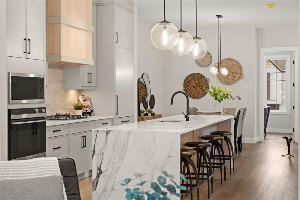 A rare offering in West Hillhurst, this brand-new semi-detached home features a highly sought-after front attached double garage and backs directly onto tranquil greenspace. Spanning over 2,200 square feet, the home offers four bedrooms and three and a half bathrooms with a layout designed for both luxury and functionality. The main floor is bright and thoughtfully designed, highlighted by a front-facing south-exposed office with oversized windows that flood the space with natural light, ideal for working from home. The open living and dining areas are anchored by a chef-inspired kitchen with premium appliances, custom cabinetry, and an oversized island, while folding patio doors off the living room seamlessly open to a large rear deck overlooking the greenspace, creating an exceptional indoor-outdoor living experience. Upstairs, the south-exposed primary retreat is filled with natural light and features a spa-like ensuite, walk-in closet, and a private balcony, while two additional bedrooms, a full bathroom, upper-level laundry, and a versatile loft space complete the second level. The fully developed lower level adds even more living space with a generous recreation room, fourth bedroom, and full bath. Ideally located steps from parks, river pathways, schools, and the vibrant amenities of Kensington, with quick access to downtown, the University of Calgary, SAIT, and Foothills Hospital, this home delivers a rare combination of luxury, light-filled design, and an exceptional inner-city lifestyle. Call today to book your tour!