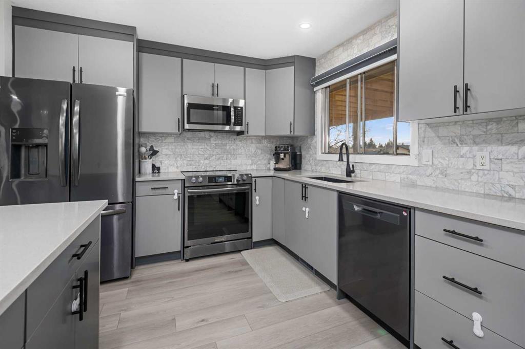 Welcome to a home that has been completely transformed from top to bottom with modern finishes and thoughtful design. This move-in-ready property offers the ideal blend of style, function, and flexibility, perfect for families, multi-generational living, or investors. Inside, you will find wide-plank vinyl flooring, an open-concept layout, sleek pot lighting throughout, fresh paint from top to bottom, and all new doors and casings. The upgraded kitchen features matte cabinetry, granite countertops, a porcelain marble backsplash, and black stainless steel appliances, creating a beautiful and practical space for everyday living and entertaining. The main level includes a cozy living area with a wood-burning fireplace, three comfortable bedrooms, and a fully updated bathroom. The lower level adds exceptional versatility with a spacious primary bedroom and private ensuite, plus an additional 1-bed/1-bath illegal suite with its own kitchen and separate entrance. This setup is ideal for extended family or a nanny suite. Outside, the upgrades continue with new stucco, a new roof, updated concrete and deck, modern fencing, and a new garage door. Come see it in person. This one truly stands out!
