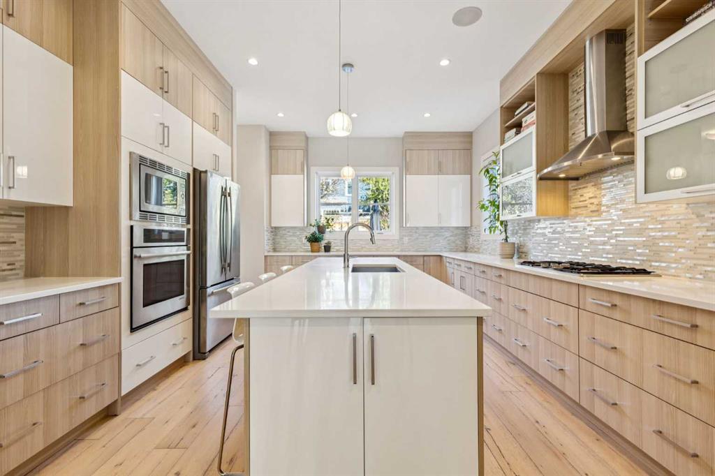 This inner-city infill delivers nearly 3,000 ft² of beautifully designed living space and a rare attached front double garage. Thoughtfully finished with exceptional soundproofing and QUALITY MATERIALS, it’s built for entertaining and everyday comfort. Step inside to 10-ft ceilings, wide-plank hardwood, and a bright, open plan with glass railings and large windows. At the centre of the home, the kitchen impresses with JennAir appliances, a 5-burner gas cooktop, an oversized island with seating, abundant drawer storage, and a dedicated beverage bar with under-counter fridge and shelving, equally suited to morning espresso or evening pours. The spacious dining area flows into the living room, where a two-way fireplace creates a cozy focal point. A walk-in pantry adds storage, while a practical rear mudroom keeps everything organized. Upstairs are three generous bedrooms with custom closet organizers. The luxurious primary retreat features a walk-in closet and a spa-inspired 6-piece ensuite with steam shower, double vanity, and jetted tub. The second-floor laundry room includes a sink and cabinetry for everyday convenience. The lower level expands your living space with a family room, full bathroom, and a versatile guest room with a sizeable walk-in closet. Notable upgrades include built-in speakers throughout, a double-insulated garage, oversized water heater, central air conditioning, rough-in for central vac, and new shingles in 2023. With quick access to downtown, a nearby off-leash dog park, and the boutiques and dining of Marda Loop, this is a rare opportunity on one of Bankview’s signature streets, celebrated for its charm and convenience to the inner city. Schedule your private showing today.