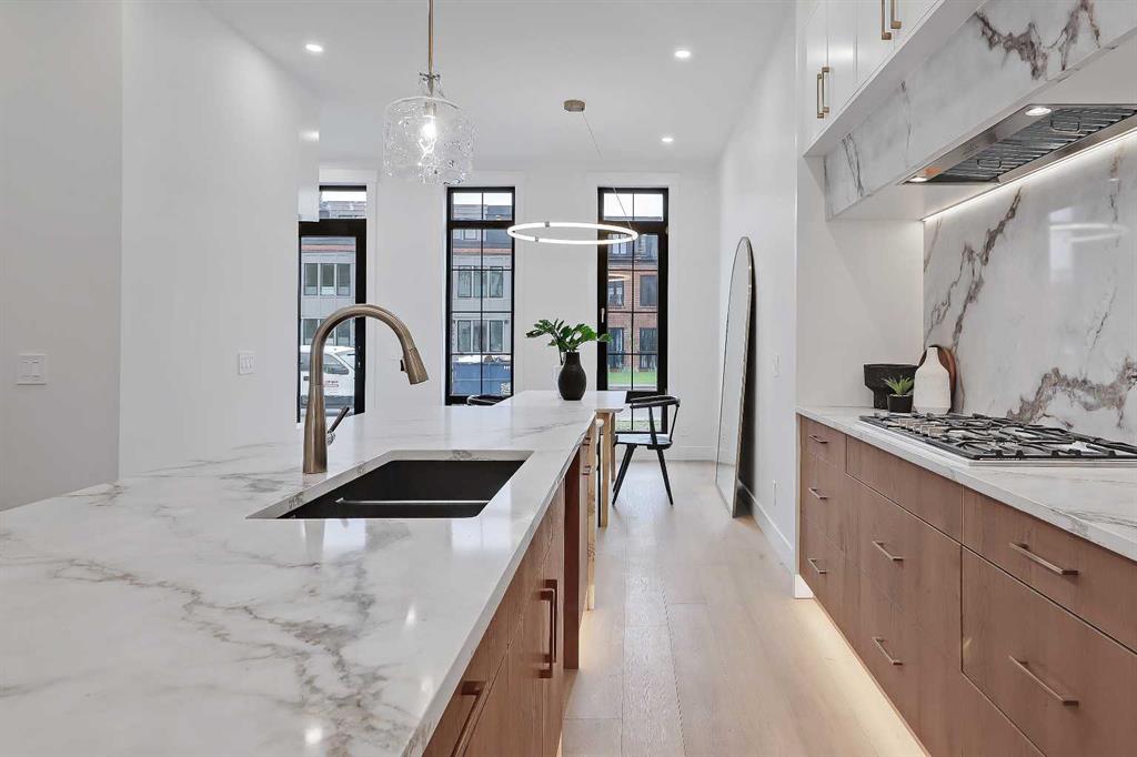 Welcome to a home where sophistication meets functionality in one of Calgary’s most sought-after inner-city communities – West Hillhurst! Set on a SOUTH-FACING lot, this stunning NEW BUILD is designed to impress with its modern architecture, thoughtful layout, & high-end finishes. Step inside & experience a bright, open-concept main floor that feels both inviting & luxurious. The heart of the home is the designer kitchen – a true showpiece featuring a massive waterfall island w/ bar seating, extensive custom millwork, quartz countertops, a built-in pantry, & premium appliances, including a gas cooktop & built-in wall oven. A full-height backsplash, stylish pendant lighting, & sleek soft-close cabinetry complete the space. The nearby dining area is perfect for hosting, w/ room for a large table to gather friends & family. The living room is designed for both relaxation & entertaining, centred around a striking gas fireplace w/ a floor-to-ceiling surround that creates a bold statement next to the modern built-in media wall. Large sliding doors flood the space w/ natural light & open onto the rear deck, seamlessly blending indoor & outdoor living. A functional mudroom on the side of the home is equipped w/ a built-in bench, & an upscale powder room completes the main floor. Upstairs, the primary retreat is a sanctuary w/ soaring vaulted ceilings & not only an expansive walk-in closet but a stylish built-in wardrobe & shelving in the main area for additional convenience. The spa-inspired ensuite features a STEAM SHOWER, a freestanding soaker tub, dual vanities, & heated floors. Two additional JUNIOR SUITES are well-sized, & each has a beautifully finished ENSUITE w/ walk-in showers, while a full-size laundry room w/ built-in cabinetry & sink adds everyday convenience. The lower level offers incredible flexibility w/ a fully self-contained 2-BED LOWER LEGAL SUITE (Approved & subject to final inspection by the city), complete w/ a modern kitchen, spacious living area, dedicated laundry, & a private entrance. Whether you use it for revenue generation, a mother-in-law suite, or a nanny suite, this space offers endless possibilities! Or, it can function as an extension of the home, providing a fantastic rec room, home gym, or media space. West Hillhurst is one of Calgary’s most desirable inner-city neighbourhoods, offering a vibrant community feel w/ unbeatable access to amenities. You’re just minutes from downtown, Kensington’s boutique shops & restaurants, & the beautiful Bow River pathways. Enjoy morning coffee at Vintage Caffeine Co., brunch at Dairy Lane Café, or take a quick stroll to nearby parks, green space & recreation facilities – like the Helicopter Park that’s just at the end of the street! Top-rated schools, SAIT, the University of Calgary, & Foothills & Children’s Hospitals are all close by, w/ easy access to major roadways for a seamless commute. Call your favourite agent today!