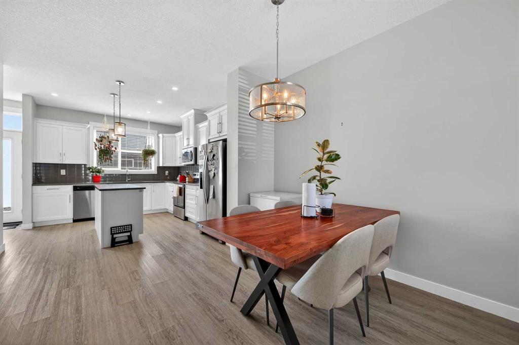 Welcome to this beautifully maintained NO CONDO FEE, CORNER UNIT home offering the perfect blend of functionality, style, and location. Situated on a desirable south-facing lot, this home is bathed in natural light, creating a warm and inviting atmosphere. When you walk in, you’ll notice the thoughtfully designed open-concept main floor. It is ideal for both everyday living and entertaining, featuring a stunning kitchen complete with upgraded cabinetry, quartz countertops, and stainless steel appliances. The home continues to impress with custom built-ins including a bench in the rear mudroom, and a versatile built-in nook - perfect as a home office. A convenient 2-piece powder room completes this level. Upstairs, you’ll find TWO SPACIOUS PRIMARY BEDROOMS, each with its own large walk-in closet and private 4-piece ensuite, separated by the convenience of upper floor laundry. The basement is ready for your future development with an egress window and bathroom rough-in. Enjoy the sunny SOUTH-FACING FENCED BACKYARD, perfect for gardening or relaxing, along with a BBQ gas line for easy outdoor entertaining. The double detached garage offers ample space for vehicles and storage, with paved alley access for added ease. Additional upgrades include CENTRAL AIR CONDITIONING and a recently installed WATER SOFTENER, adding comfort and long-term value. Location is unbeatable. Just steps from Sky Pointe Landing plaza, a major retail hub offering dining, shopping, fitness, medical services, and everyday essentials. Families will appreciate being within walking distance to both Prairie Sky School (Public K-9) and Apostles of Jesus School (Catholic K-9), with Nelson Mandela High School just a short drive away. Commuting is effortless with a bus stop only a 1-minute walk from your door, making this a highly transit-friendly location. Whether you're a first-time buyer, downsizer, or investor, this is a rare opportunity to own an exceptional property in one of Calgary’s fastest-growing communities. Book your showing today!