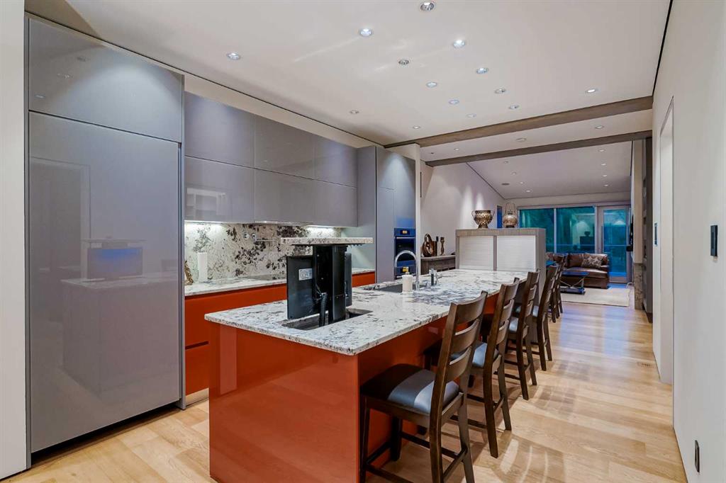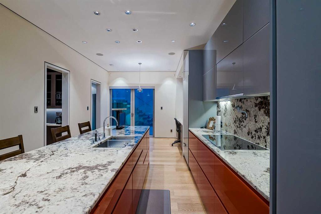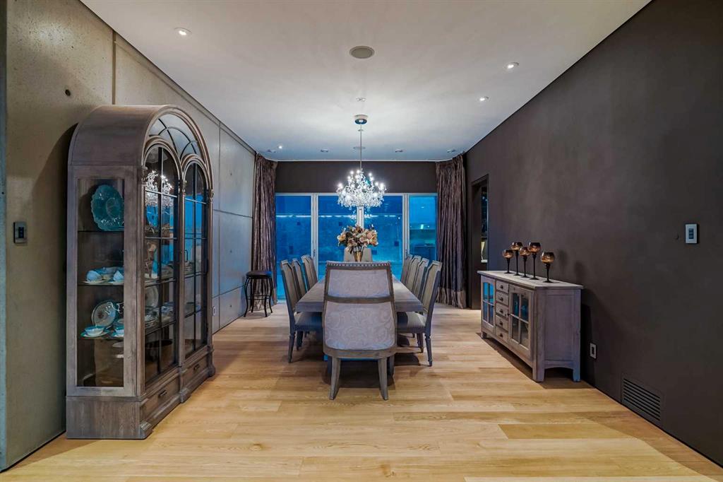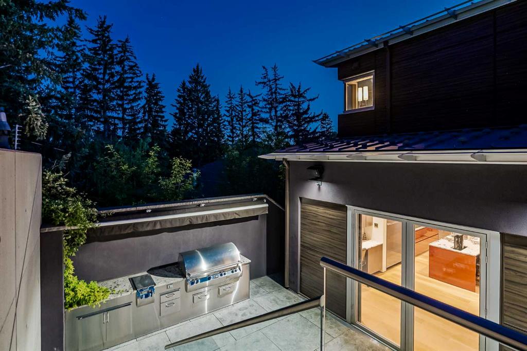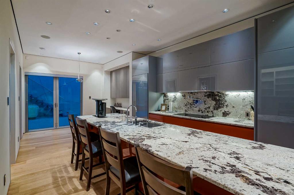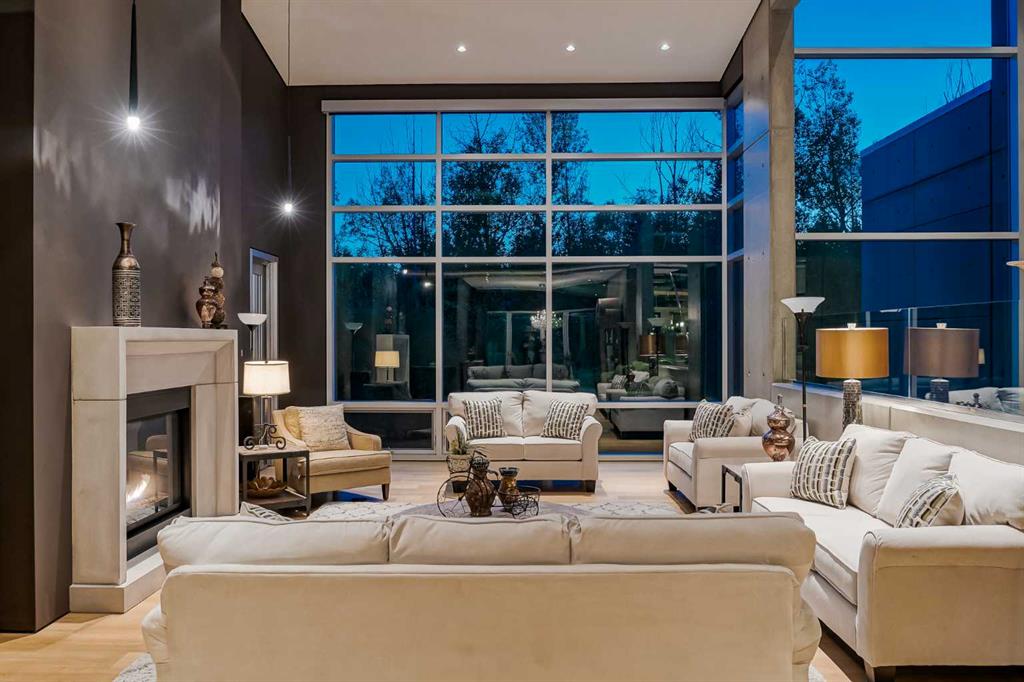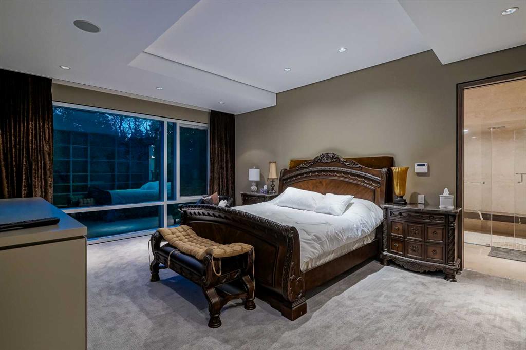 Welcome to an unparalleled masterpiece in Upper Mount Royal, proudly overlooking the serene beauty of Cartier Park. This is more than a home; it's a statement of exquisite taste and refined living, where over 7,000 sq ft of developed space seamlessly blends style, sophistication, and luxurious amenities. Step into a realm of exclusive privacy and security, beginning with a rare geothermal heating system that extends to the front stairs, and walkway. Inside, discover a grand layout featuring 4 bedrooms plus a versatile flex room, 5 full baths, 2 half baths, and the convenience of an elevator. Architectural brilliance shines through with 10ft+ vaulted and barreled ceilings, complemented by rich oak, marble, and porcelain tile flooring. This is a true Smart Home, offering integrated control over security, heating, lighting, sound systems, TVs, camera surveillance. The welcoming front entrance opens to a dramatic free-standing staircase leading to the main floor's expansive living room, boasting sweeping park views and a double-sided gas fireplace shared with a cozy family room. The family room extends to a sunny west-facing patio, flowing into an ultra-modern kitchen equipped with top-tier Miele and Sub-Zero appliances, granite countertops, lacquered cabinets, an island with a pop-up TV, and two butler’s pantries. The formal dining room invites grand entertaining, opening onto a patio with an outdoor kitchen and a stunning water feature. The main floor primary suite is a private sanctuary, featuring a spa-like ensuite with a steam shower, dual sinks, a large walk-in closet, and a vanity with a behind-mirror TV. A second main floor bedroom with ensuite, a spacious laundry room, and an elegant powder room with an under-lit onyx countertop complete this level. The upper floor reveals two more generous bedrooms, each with an ensuite, alongside a large, naturally lit bonus room. Descend to the first floor to find an impressive, park-view gym, a Swim-in-Place lap pool with an underwater treadmill, a steam room, and a changing room. Entertainment awaits in the state-of-the-art theatre, boasting 5G projection, 15 plush recliners, a wet bar with a U-line fridge, and a dedicated A/V security room. This level also includes a large, productive office space. The lower floor is a connoisseur's dream, featuring an air-conditioned, humidified wine room and direct access to a 5-car garage with a power rotating platform, a Tesla electric car charger, ample recreational vehicle parking, and even a convenient dog wash. Additional luxuries include hot water on-demand with two storage tanks, a soft water system, and sun-protective automatic awnings on the back patio and front balcony. The back yard is enhanced by a 3-burner BBQ with gas side burners and elegant waterfall. This is a truly one-of-a-kind home in one of Calgary's most prestigious communities. Its incredible location offers access to designated schools, trendy 17th Ave and ease of access to downtown.