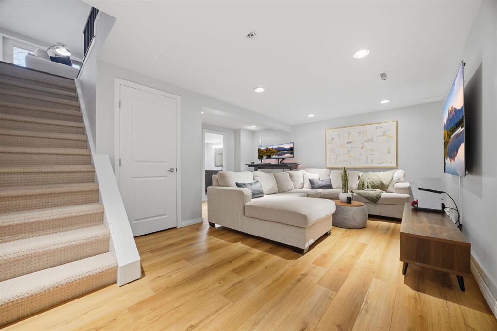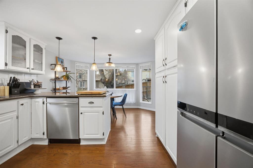 Set on a quiet street in the heart of Strathcona Park, this family home sits within one of Calgary’s most loved west side communities, known for mature trees, great schools, and easy access to the downtown core. It’s the kind of neighbourhood where homes are held onto and families put down roots. Inside, high ceilings and floating stairs create a bright, open feel, while the layout moves naturally from one space to the next. The flow allows each area to feel connected without losing its own purpose. The kitchen anchors the main level and is filled with natural light throughout the day. It’s practical, comfortable and offers ample storage. Just off the kitchen, a dedicated dining area easily accommodates an 8-10 person table, creating the perfect space for shared meals, holidays, and hosting. The breakfast nook offers a more casual option, perfect for morning coffee, quick meals, or school day routines. Off the kitchen, the home opens into the family room, where a wood burning fireplace becomes a natural focal point. This is a space made for everyday comfort, whether it’s curling up on the couch for movie night, gathering by the fire in the evening, or setting up a coffee or beverage bar using the cabinetry tucked beneath the stairs. It’s easy to imagine this room being used and enjoyed in all seasons. The main floor also includes a combined mudroom and laundry area with newer washer and dryer, along with a conveniently located powder room that keeps daily routines contained and organized. Downstairs, the lower level expands the living space in a meaningful way. Engineered hardwood runs throughout a large recreation area well suited for movie nights, watching the game, or entertaining family and friends. A bedroom and full bathroom offer flexibility for guests, teens, or extended family, while the cedar sauna adds a quiet place to unwind. A spacious utility room with built in shelving and counter space provides excellent storage and workspace. Three spacious bedrooms and two renovated bathrooms complete the upper level. The primary suite includes an upgraded ensuite and a loft area that can easily be used as a home office, reading nook, or quiet place to unwind. Outside, the west facing backyard is simple and usable, with a large deck and low maintenance landscaping that makes summer evenings feel relaxed and unforced. Double front doors and a double garage complete the exterior. This is a home that invites people to come together. Where mornings are full, dinners are shared, and evenings naturally settle in around the spaces that matter most. A place that feels welcoming, comfortable, and easy to imagine filled with family, friends, and everyday moments that make life here so special.