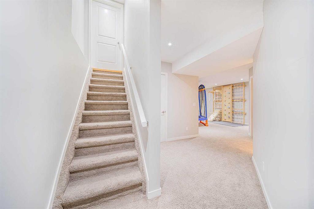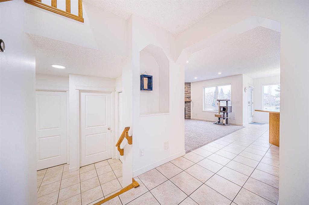 Welcome to this well-maintained family home in Lake Chaparral, offering over 2,436 sq ft of total finished living space, with a bright and practical layout, plus full access to the year-round lake amenities. The main floor features an open living area, a functional kitchen with plenty of storage, and a dining space that leads directly to a large backyard deck—ideal for everyday living and entertaining. Upstairs offers three comfortable bedrooms, including a spacious primary suite with a walk-in closet, private ensuite, and upgraded automatic blinds. A versatile bonus room adds flexibility for work or family use. The finished basement provides a cozy recreation room, an additional bedroom, and a full bathroom. The home has seen valuable updates including a newer hot water tank, a new furnace with humidifier and UV air purification (2025), new dishwasher, microwave, and kitchen faucet (2025), automatic blinds on the main floor and primary ensuite, CCTV system, a newly installed water softener, replaced roof and siding, and air conditioning for added summer comfort. Outside, a convenient shed provides extra storage for tools and equipment, and the attached double garage completes this practical family home. Situated on a quiet, family-friendly street close to schools, parks, shopping, and Lake Chaparral facilities, this property offers comfort, convenience, and an excellent community lifestyle.