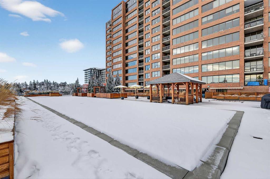 This charming 2-bedroom, 2-bathroom residence with 2 parking stalls is located within the captivating and prestigious Roxboro House. The exceptionally designed floor plan offers the perfect balance of everyday functionality and an inviting layout ideal for entertaining. Upon entry, a spacious foyer welcomes you, with a versatile den or home office conveniently positioned adjacent to the kitchen. The updated kitchen is bright and beautifully appointed, featuring ample storage and counter space, upgraded stainless steel appliances (including an induction stove/oven), granite countertops, and an elegant backsplash with inlay, making it both stylish and practical. The dining room is enhanced by classic wainscoting, a coffered ceiling, refined lighting, and a built-in dry bar, creating an ideal setting for hosting guests. The cozy living room offers a warm and relaxing atmosphere, perfect for unwinding at the end of the day. Designed to maximize privacy, the generously sized bedrooms and bathrooms are thoughtfully tucked away down the hall. Recent upgrades include new flooring, appliances, and fresh paint throughout. Additional highlights include air conditioning, two parking stalls, and condo fees that include electricity, heat, and water. Residents enjoy access to an exceptional suite of amenities, including 24/7 concierge service, games room, party and recreation rooms, fitness centre, pool with hot tub, sauna, woodworking shop, and a truly remarkable rooftop patio. All of this is set in a prime location just steps from the river and its scenic pathways, as well as the boutique shopping and acclaimed dining of 4th Street. Rarely does a Calgary condominium offer such an unparalleled combination of luxury, amenities, and location. Distinctive living defined by truly unique features