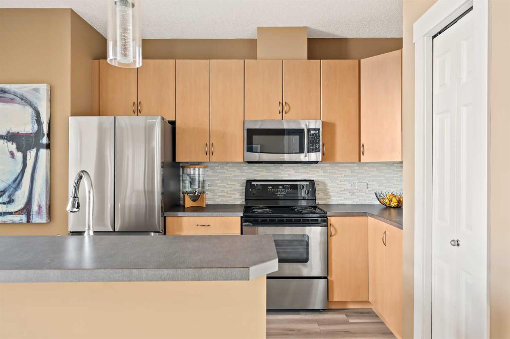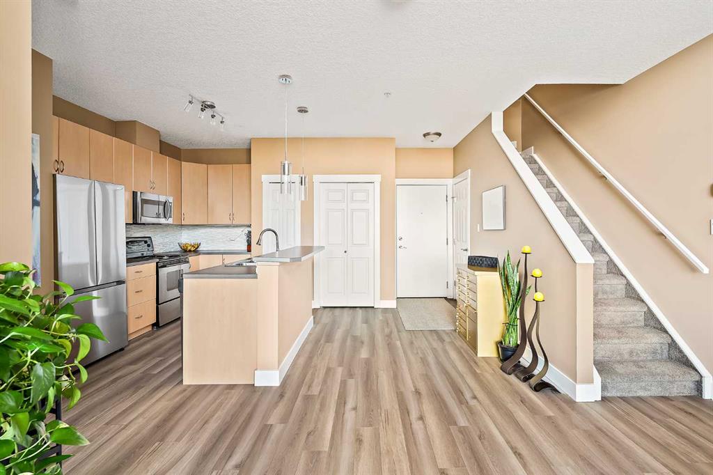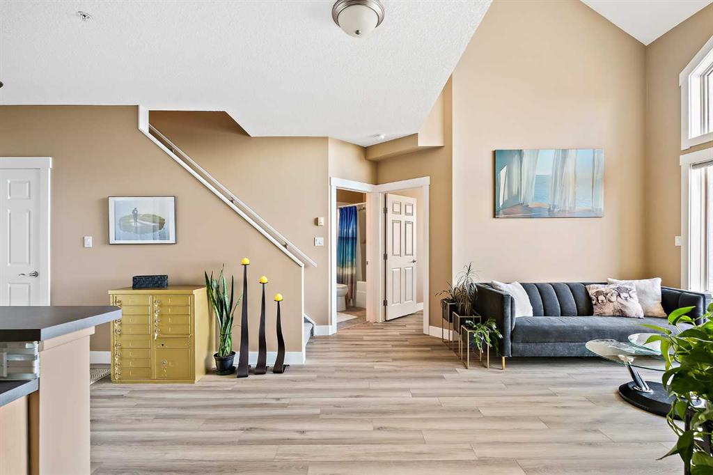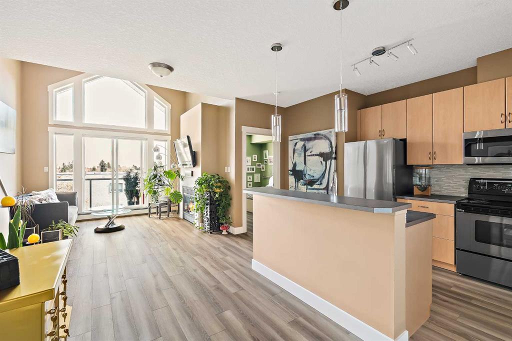 Welcome to loft living at its finest in the heart of Altadore. Perched on the top floor of the sought-after Copa Complex, this spacious 2-bedroom, 2-bathroom loft offers 1,162 sqft of elevated urban style, perfectly blending comfort, character, and an unbeatable location. Step inside and feel the difference soaring vaulted ceilings make, allowing natural light to pour in all day long and create an airy, open atmosphere. The main living space is warm and inviting, complete with a cozy gas fireplace, while the thoughtfully updated kitchen shines with new lighting, under-cabinet illumination, a new fridge, and new dishwasher, perfect for both everyday living and entertaining. The lofted upper level adds versatility and charm, featuring decorative wall cabinetry, making it an ideal space for a home office, lounge, or creative retreat. Both bathrooms are equipped with automatic fans, and practical upgrades like closet storage shelving and patio deck flooring enhance everyday convenience. Step outside to your private balcony and soak in the vibrant energy of Marda Loop... just steps from it all. Enjoy unmatched walkability with Avenue Thirty Four just blocks away, home to local favourites like Dopo, Penny Crown, Tat’s Treats, and Avitus Wine Bar, along with trendy boutiques, cafes, and more. Nature lovers will appreciate being within walking distance to River Park, Sandy Beach, and scenic green spaces. This pet-friendly (with board approval), well-managed building also offers heated underground parking with your own single stall, plus underground visitor parking for guests. As one of the largest units in the complex, this is a rare opportunity to own a standout loft in one of Calgary’s most dynamic communities. This is urban living done right: stylish, spacious, and right in the action.