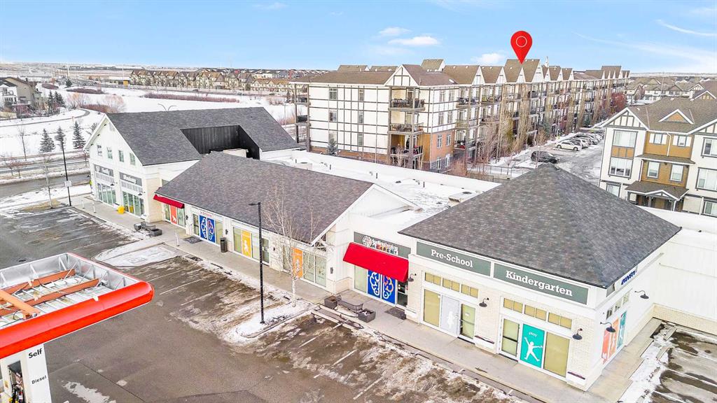 Welcome to this BRIGHT CORNER UNIT in the heart of New Brighton, offering fantastic value in a well established community. This inviting TWO BEDROOM CONDO features over 600 SQ FT OF LIVING SPACE, with 9FT CEILINGS and large windows that fill the home with natural light. The kitchen is beautifully finished with QUARTZ COUNTERTOPS, DARK CABINETRY, and NEWER STAINLESS STEEL APPLIANCES, including a HIGH END FRIDGE, NEWER STOVE, and a space saving over the range microwave. A peninsula provides extra prep space and a convenient eating bar, making it perfect for both everyday living and entertaining. The living area opens onto a SUNNY COVERED BALCONY WITH BBQ GAS LINE, ideal for relaxing or hosting in warmer months while enjoying a quiet outlook over the complex. Both bedrooms are SIMILAR IN SIZE, each with LAMINATE FLOORING and SPACIOUS CLOSETS, and are thoughtfully positioned for privacy. The FOUR PIECE BATHROOM continues the quartz finishes and includes a DEEP TUB AND SHOWER COMBO. Additional features include IN SUITE LAUNDRY, NO CARPET, LAMINATE AND TILE FLOORS THROUGHOUT, ASSIGNED SURFACE PARKING STALL 58, STORAGE LOCKER 9 LOCATED IN THE PARKADE, and access to a BICYCLE STORAGE ROOM. This WELL MANAGED COMPLEX WITH LOW CONDO FEES is ideally located close to PARKS, SCHOOLS, SHOPPING AT 130 AVE AND HIGH STREET, TRANSIT, and with quick access to DEERFOOT AND STONEY TRAIL. A perfect opportunity for FIRST TIME BUYERS, INVESTORS, or anyone looking for a bright, low maintenance home in a great community. Residents also enjoy exclusive access to the NEW BRIGHTON RESIDENTS ASSOCIATION, offering YEAR ROUND AMENITIES such as a SPLASH PARK, TENNIS COURTS, VOLLEYBALL, a HOCKEY RINK, FITNESS CLASSES, and a wide range of COMMUNITY EVENTS. This home SHOWS BEAUTIFULLY and is PET FRIENDLY WITH BOARD APPROVAL. BOOK YOUR PRIVATE SHOWING TODAY.