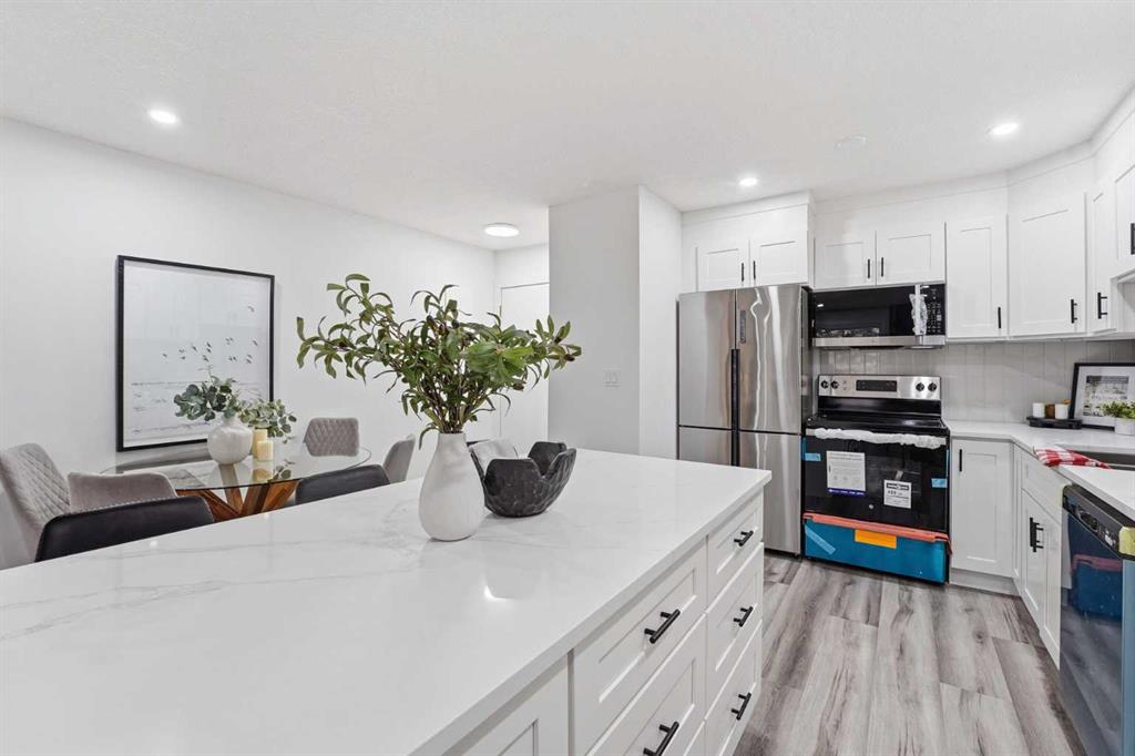Move-in ready, fully transformed, and perched on the coveted top floor — with elevator access right to your level — this bright and beautifully redesigned 1,082 sq. ft. home delivers modern luxury just a 2-minute drive from Chinook Mall, parks, schools, transit, and every amenity you could ask for. Step into a stunning open-concept layout crafted for today’s lifestyle. The chef-inspired kitchen impresses with sleek quartz countertops, soft-close cabinetry, a generous island with storage, a pantry, and sparkling brand-new Energy Star appliances — the perfect blend of style and function. The spacious living area invites you to relax in comfort, anchored by a striking stone-clad wood-burning fireplace that warms the room with character and charm. Thoughtfully placed flush-mount LED lighting illuminates the space, while fresh paint and wide-plank luxury vinyl flooring add a seamless, elevated finish from end to end. Retreat to your king-sized primary bedroom complete with a walk-through closet and a beautifully updated 3-piece ensuite. Both bathrooms have been extensively reimagined, featuring contemporary vanities with quartz counters, modern fixtures, upgraded lighting, and in the main bath — a mirror with makeup lighting and an electric anti-fog feature. Need more room to live, work, or create? A flexible bonus room adapts effortlessly into an office, hobby room, or organized storage space. Enjoy the peace and privacy of west-facing exposure, flooding the home with natural light, and savour outdoor living on your oversized 30’ x 5’ balcony — perfect for morning coffees, evening lounging, or year-round fresh air. Completing the package are an assigned parking stall, a dedicated storage locker, and a truly pet-friendly community that welcomes cats and dogs of all sizes — plus the convenience of an on-site elevator, ensuring easy access from your car to your front door. Freshly redesigned. Flooded with light. Close to everything — and effortlessly accessible by elevator. This is the top-floor showstopper you’ve been waiting for — schedule your chance to call it home today!