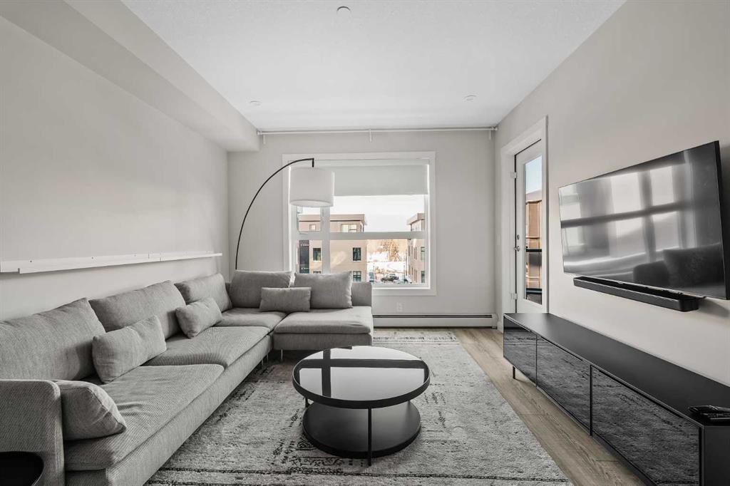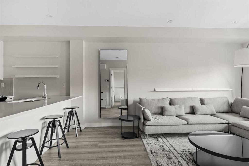 ALL FURNISHINGS INCLUDED! Move in TODAY! Welcome to Capella in the award-winning University District—where modern luxury, thoughtful design, and unbeatable convenience come together in one exceptional home. This beautifully appointed residence showcases a spacious, open-concept floorplan enhanced by elegant luxury vinyl plank flooring and expansive windows that frame views of Capella’s serene, landscaped courtyard. The gourmet kitchen is designed for both style and function, featuring full-height cabinetry, quartz countertops, and an oversized peninsula with seating for four—perfect for morning coffee, casual dining, or entertaining guests. The bright bedroom overlooks the private balcony (w/gas bbq hookup) and the lush courtyard below, offering a peaceful retreat at the end of your day. A spa-inspired 3 pce bathroom elevates daily routines with quartz countertops, a chic tile backsplash, an oversized mirror, and a sleek floating shelf for additional storage and style. Built with above-and-beyond sound attenuation, this home provides exceptional quiet and comfort—allowing you to fully enjoy the tranquility of the surrounding green space. Capella’s Built Green Gold certification ensures high energy efficiency and long-term cost savings, delivering a home that feels as smart and sustainable as it is luxurious. Residents of Capella enjoy premium amenities including secure underground parking, a private storage locker, ample visitor parking, and a fully equipped fitness centre. All of this is located in the heart of University District, one of Calgary’s most vibrant and walkable communities. Steps from your door, you'll find trendy restaurants, cafés, boutique shopping, fitness studios, grocery stores, a movie theatre, and everyday conveniences. The Alberta Children’s Hospital, the University of Calgary, and an abundance of parks and pathways are all just moments away.