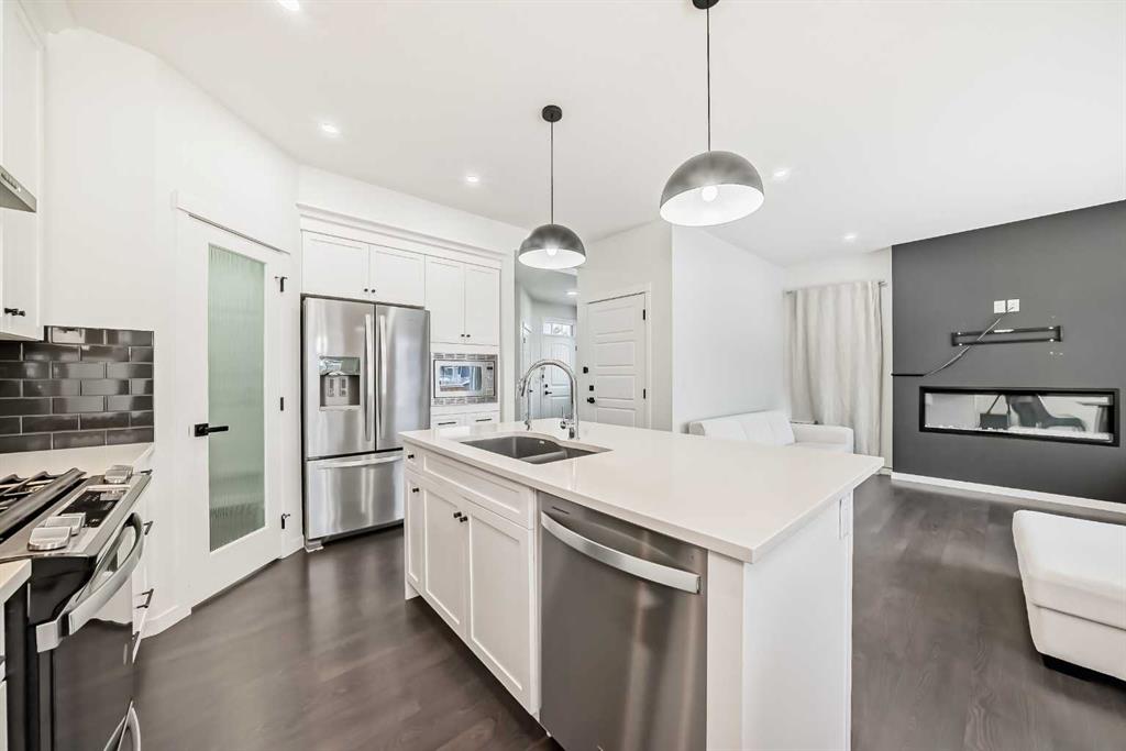 Welcome to 31 Creekside Grove SW a stunning 4 bed, 3.5-bath home on a spacious corner lot in Pine Creek. Built in 2022, this modern 2-storey offers over 2,400 sq ft of total living space, including a legal 1 bedroom basement suite leased at $1,000/month perfect as a mortgage helper or income property. The main floor features an open-concept layout with granite counters, stainless steel appliances, gas range, and a bright living area with electric fireplace. Upstairs you'll find a bonus room, laundry, 3 bedrooms including a large primary suite with walk in closet and private ensuite. Enjoy warm months on the back deck, fully landscaped & fenced yard, and stay cool with central A/C. The legal basement suite has a private side entrance, full kitchen, 4 pc bath, laundry, and separate living space – turnkey and ready to generate passive income. Located on a quiet street near parks, walking paths, and minutes to shops, schools, Stoney Trail & Macleod Trail. Skip the builder markup this move in ready home includes landscaping, fencing, A/C, appliances, and a finished suite. Act fast this is one of the best values in Calgary’s SW!