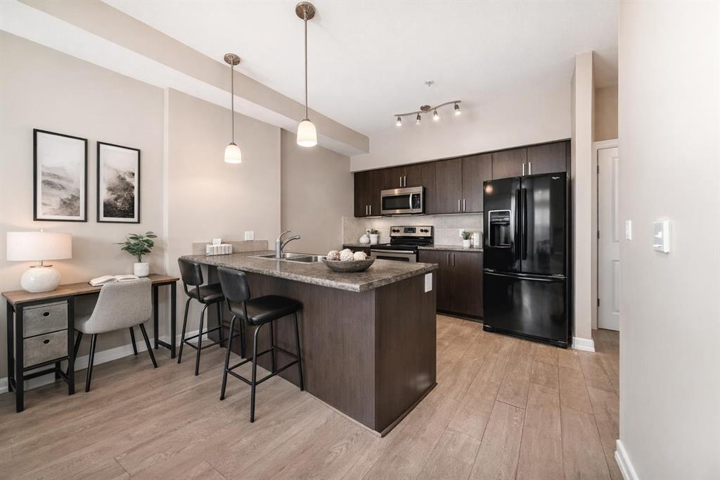 Modern Apartment for Sale in Copperfield Exceptional Living in a Great Neighborhood! Welcome to your new home in the vibrant community of Copperfield. This beautifully maintained apartment is the perfect blend of style, comfort, and convenience. Whether you are a first-time buyer, downsizing, or searching for a smart investment, this property is sure to impress. The open-concept living and dining area is ideal for relaxing. The modern kitchen space with a large island makes meal preparation a pleasure. The master bedroom features a walk-in closet for ample storage. The bright, bathroom is accessible through the master bedroom. The private balcony is perfect for enjoying quiet evenings with a great view. In-suite laundry adds to your convenience. The unit comes with one parking stall and a storage locker. You will feel right at home. Neighbourhood Highlights, Copperfield is renowned for its friendly atmosphere and scenic parks. Residents enjoy easy access to schools, shops, and public transit, as well as picturesque walking trails, playgrounds, and local cafes just steps away. Quick access to major roadways means commuting is simple and efficient. Some pics have been virtually staged to give you an idea you could set the property up.