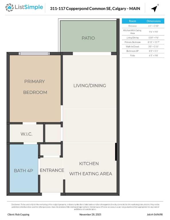 | Bedroom - Primary | 8`11" x 11`7" | Main |