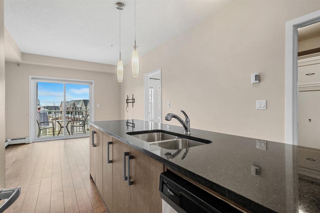 **OPEN HOUSE Apr 25 Sat 12-2pm** There’s something special about coming home to a place that feels like a retreat where life slows down just enough to be enjoyed! Welcome to Ebony Apartments in the heart of Mahogany, one of Calgary’s most sought after lake communities. Here, life feels a little slower, a little more intentional, and a lot more connected. Imagine waking up and choosing how your day unfolds. A peaceful walk along scenic pathways coffee in hand or a morning jog past natural wetlands, and ending your evenings watching the sunset by the lake. With 63 acres of pristine lake water, 21 acres of private beach, and year round activities from summer paddle boarding to winter skating Mahogany invites you to embrace every season. The community offers a lifestyle that feels like a getaway, every single day. This is more than a condo it’s a community where neighbours become familiar faces and everyday moments turn into lasting memories. Perched on the third floor, this beautifully maintained 2 beds & 1 bath unit offers 572 sqft of bright, functional living. The moment you step inside, you’re greeted by natural light that fills the space, creating an inviting and uplifting atmosphere. The kitchen is both stylish and practical, complete with stainless steel appliances and a generous breakfast bar perfect for slow mornings with coffee or casual evenings spent catching up with friends. The adjacent living room flows seamlessly to your private balcony through sliding glass doors, creating an ideal spot to unwind and take in the day. Tucked away for added privacy, the primary bedroom offers a peaceful retreat, while the versatile second bedroom or den is complete with a Murphy bed that effortlessly adapts to your lifestyle, whether as a guest space, home office, or both. In-suite laundry with additional storage space and a surface parking stall provides everyday convenience, while the building’s private gym adds an extra layer to the lifestyle making it easy to stay active without ever leaving home. Whether you’re stepping into homeownership, simplifying your lifestyle, or investing in a vibrant community, this home offers something more meaningful—a place where comfort, connection, and a sense of escape come together. Just minutes from your door, Mahogany Village Market offers everything from daily essentials to local cafés, while an evening at Chairman’s Steakhouse adds a touch of indulgence close to home. While Mahogany stands out for the cohesive design and thoughtfully planned community feel, it’s the lifestyle here that truly captures your heart!