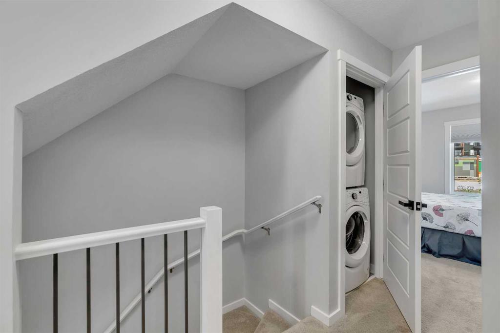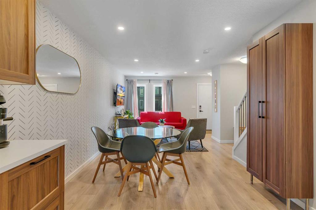 Welcome to 312, 19500-37 Street SE. A beautifully maintained, energy-efficient townhome in the sought-after Zen Urban District, ideally located in the vibrant heart of Seton. Offering over 1,500 square feet of thoughtfully designed living space across three levels, this home features 3 bedrooms, 2.5 bathrooms, and an incredible private rooftop patio with stunning mountain views. The open-concept main floor welcomes you with durable laminate flooring, a spacious living area, and a bright dining space that flows seamlessly into the modern kitchen. The kitchen boasts updated white cabinetry with a stylish blue-tone island, quartz countertops, stainless steel appliances, and an island with seating, all overlooking a fenced backyard. Upstairs, the primary suite features a 3-piece ensuite and a large closet, while the generous second bedroom is steps from a modern 4-piece bathroom. A convenient laundry closet is also on this level. Head up to the third floor to find a versatile loft-style third bedroom or flex space—perfect for a guest room, home office, TV room, or gaming area—along with direct access to the rooftop patio. Additional features that set this home apart include air conditioning for year-round comfort, designer wall treatments and upgraded window coverings for a polished aesthetic, and modern finishes throughout that make the home feel fresh and contemporary. It shows like new, reflecting the care and pride of ownership. Located in a prime interior spot within the complex, the home offers added privacy and quiet. Plus, with ZEN’s EnerGuide™ rating, you'll benefit from an average of 36% energy savings each month, ensuring long-term value and efficiency. Live steps from the South Health Campus, shops, restaurants, cafes, fitness facilities, a movie theatre, and all the amenities that make Seton one of Calgary’s most dynamic communities.