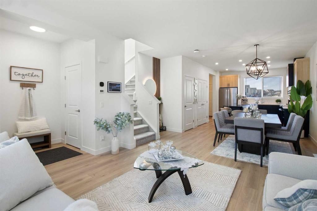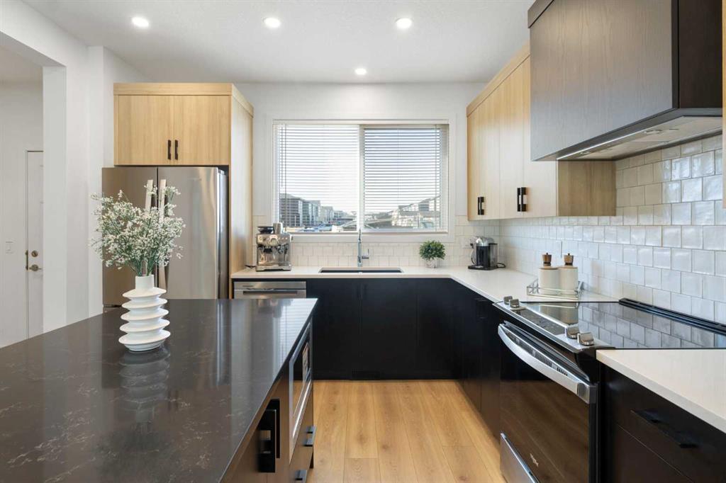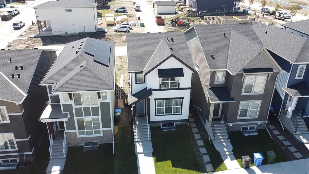 Move-In Ready DETACHED Upgraded 2024 home in the heart of Ambleton NW Calgary with NO GST added to the price! Unlike many new lots still facing active construction, this home sits on a SETTLED street, offering a more established feel while still being just steps from Ambleton lake, parks, playgrounds, and future school sites. Inside, you’ll love the 1,433 sq. ft. open-concept layout with 3 bedrooms + 2.5 baths, thoughtfully upgraded with premium finishes. The heart of this home is its elevated GOURMET kitchen, designed with a stylish centre island and flush eating bar, complemented by sleek STAINLESS STEEL appliances including a French door refrigerator with ice maker, Panasonic microwave, and designer hood fan. The open design flows seamlessly into the spacious dining area, perfect for both family dinners and entertaining guests. This home comes with high-performance standards, including: 10 SOLAR PANELS, you will save on energy bills. Outdoor living ready with a 12' x 10' COMPOSITE DECK, durable, elegant, low maintenance, and perfect for entertaining (a $7,000 value already included). A SEPARATE SIDE ENTRY, perfect for future basement development of a LEGAL SUITE. SMART HOME package including Echo Hub 8" wall panel (with Alexa), Ring Doorbell + Floodlight, Ecobee thermostat, smart lock & Wi-Fi booster. QUARTZ COUNTERTOPS in kitchen and all bathrooms. Built Green Canada certification with EnerGuide rating. UV-C Ultraviolet Light Purification System. High-efficiency furnace & HRV unit. Navien tankless hot water heater. Triple-pane windows. Raised 9’ ceilings. Front landscaping already complete. Rear BBQ gas line. And with easy access to Stoney Trail & 144 Ave NW, you’re minutes from downtown, the airport, shopping, and dining. Why buy ATTACHED when you can buy this DETACHED HOME FOR A LOWER PRICE!