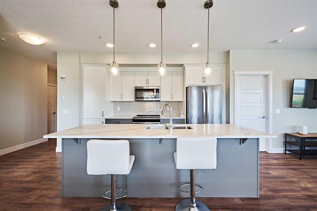 2 BEDROOM, 2 BATHROOM CORNER UNIT!! 1 title parking, 1 titled storage locker!! Large south exposed full-width covered balcony with gas BBQ hookup!! It is the best unit sales at BEST Price!. Built by award winning Rohit communities, the Argento floor plan offers a functional + timeless design. Welcoming foyer! Spacious open concept living! Stunning kitchen with large center island, 2-toned cabinets, pantry, upgraded SS appliances, quartz counters + complimented hardware. Space for a dining room table! Master bedroom offer a gorgeous 5PC ensuite + walk-in closet. 2nd bedroom for guests or office space, 4PC bathroom + Ensuite laundry. Your unit comes with titled parking (stall #168) and title storage (on same floor as unit locker #S83). Located within walking distance to South Calgary Health Campus, world's largest YMCA, Cineplex VIP movie theater, countless amenities such as grocery stores, restaurants and much more. Bright and open this condo offers all the modern day comforts.