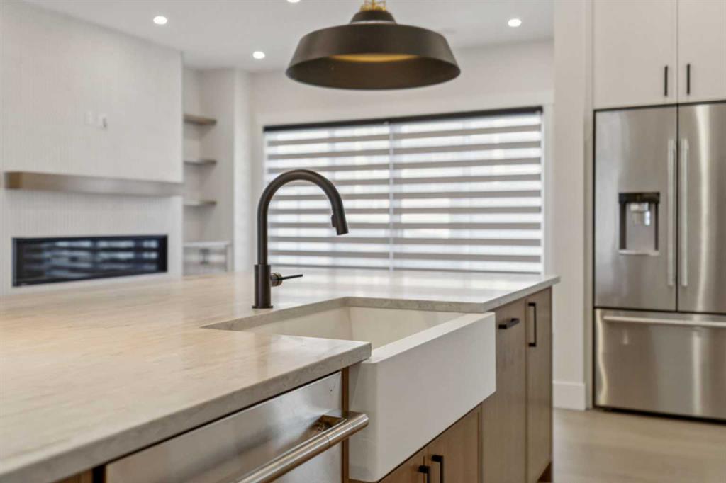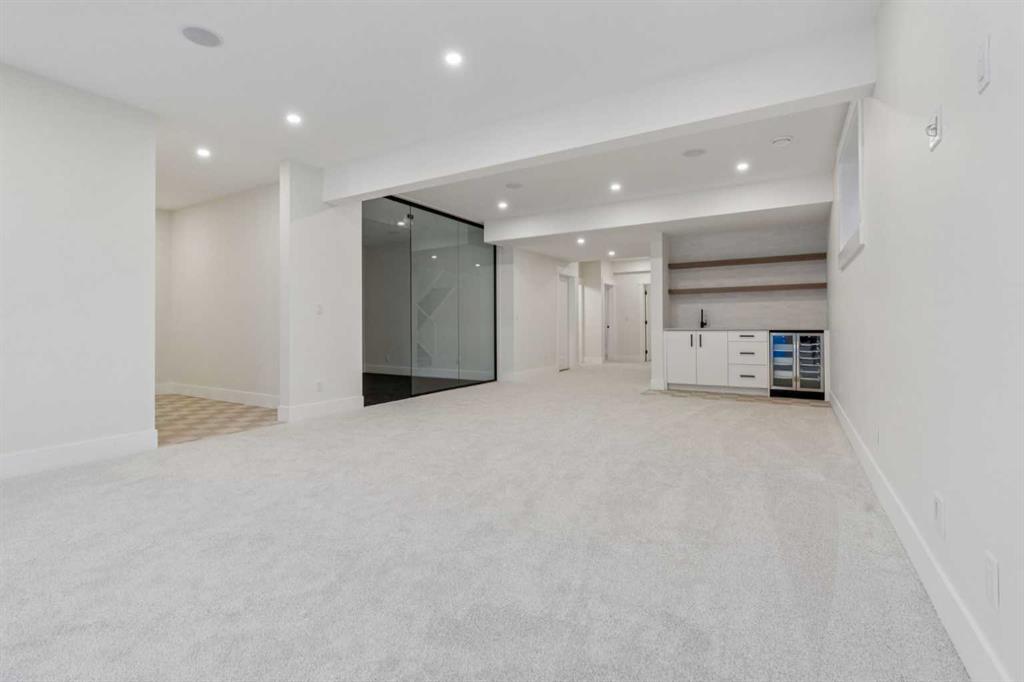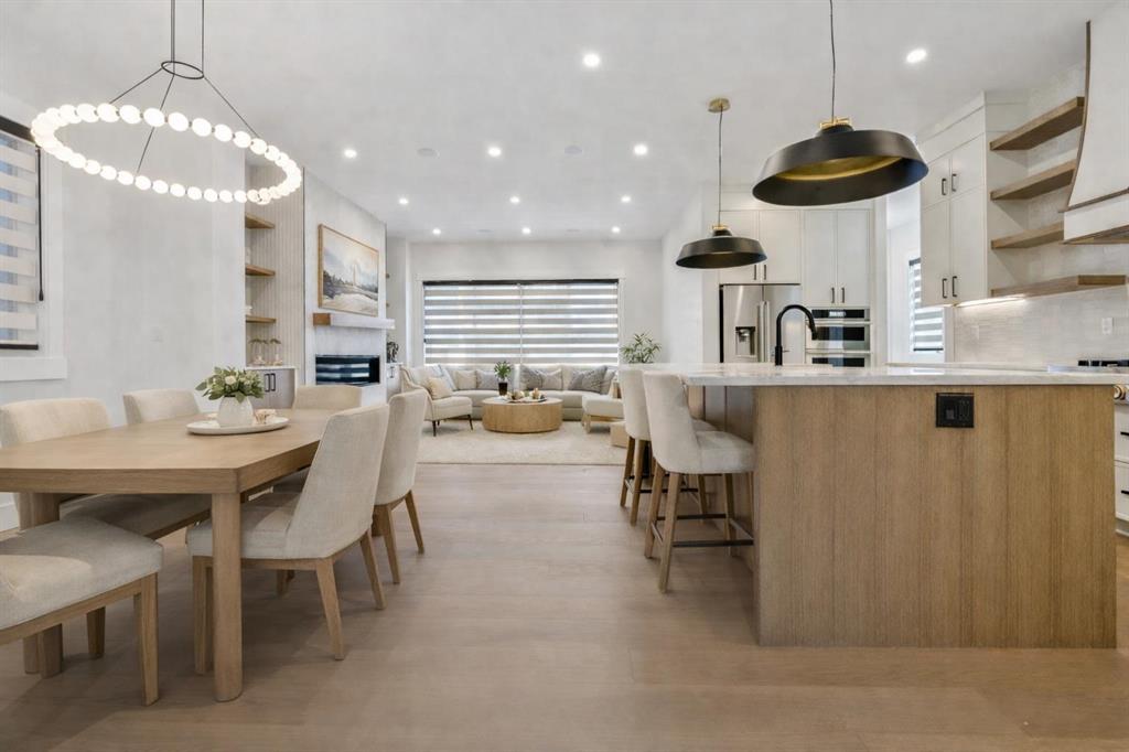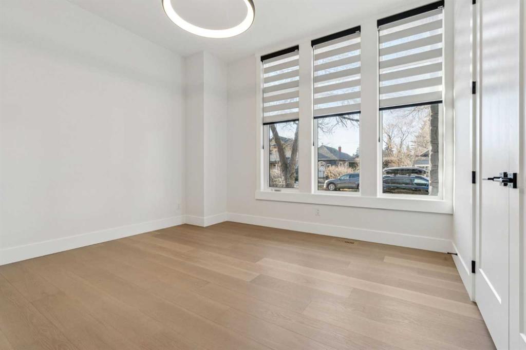 Tucked into a well located and established pocket of Hillhurst, this ELEGANTLY CRAFTED custom-built home offers elevated inner-city living just steps from Kensington, the Bow River pathway system, parks, dining and everyday amenities. Offering over 4,500 ft² of meticulously finished living space, this home is designed for modern family living and long-term lifestyle flexibility, featuring 6 bedrooms, 6 bathrooms, a walk-up lower level and insulated TRIPLE GARAGE with vaulted ceiling. The main floor is bright and open with large windows, seamless flow between living, dining and entertaining spaces, and a striking chandelier that creates a beautiful focal point within the staircase. The kitchen is both functional and refined, featuring premium JennAir appliances, custom cabinetry, quartz surfaces, a large statement island and walk-in pantry. A main floor flex room with full bathroom and walk-in closet offers excellent versatility for guests, or an executive office workspace. Upstairs, the primary suite offers a quiet retreat with spa-style ensuite including steam shower and soaker tub. The walk-in closet offers room to move, complete with built-ins and practical storage design. Two additional bedrooms each feature private ensuites and walk-in closets, plus a bonus living area and second laundry room for added convenience. The lower level features a large recreation area, wet bar, glass enclosed fitness space, two additional bedrooms, full bathroom and mudroom with built-in storage and direct outdoor access. Additional highlights include hardwood flooring, 10' main floor ceilings, 9 ft ceilings on the upper, built-in speakers, power blinds, custom built-ins and a timeless modern exterior finished with durable premium materials and expansive window design.