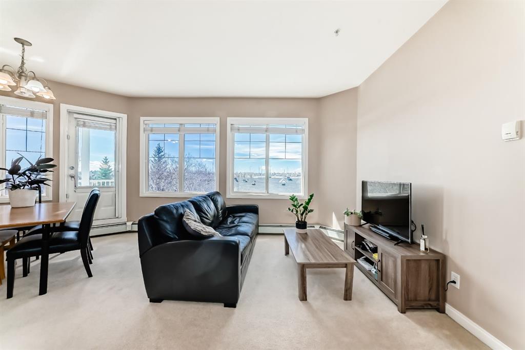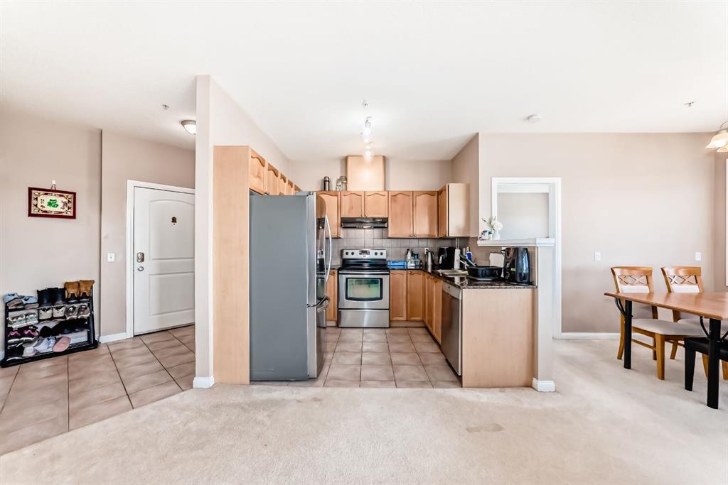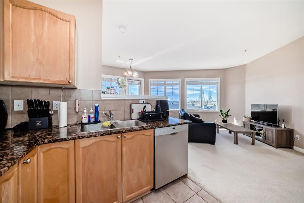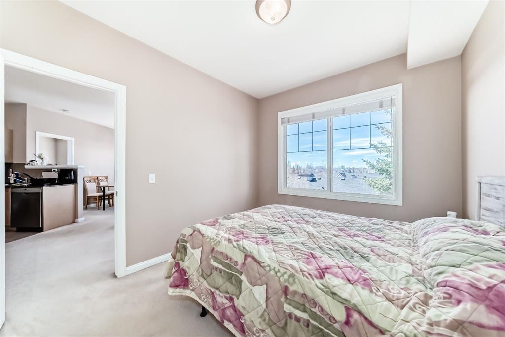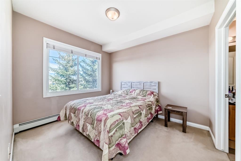 Caledonia on the Waterfront! Welcome home to this sun-drenched GEM featuring a prime south-backing location with breathtaking views of the Rockies. This 2-bedroom, 2-bathroom residence boasts an open-concept layout with soaring 9-foot ceilings and massive windows that flood the space with natural light. The chef-inspired kitchen shines with granite countertops, upgraded maple cabinetry, and ample storage. Designed for maximum privacy, the bedrooms are tucked on opposite sides of the unit; the primary suite features a private 4-piece ensuite, while the second bedroom offers a 3-piece ensuite with dual access to the living area. Enjoy the fresh air on your expansive south facing balcony that spans the dining area and second bedroom! Practicality is key with an in-suite washer and dryer, plus a premium oversized parking stall near the elevator that easily fits a full-sized SUV and a storage container. Residents enjoy luxury building amenities including a grand hotel-style lobby, resident social lounges, a library, and a party room with a kitchenette. Perfectly situated in a secure, pet-friendly building next to scenic ponds and walking paths, you are steps away from McKenzie Towne High Street and minutes from South Health Campus and major retail hubs. Don’t miss this rare combination of mountain views and maintenance-free living!