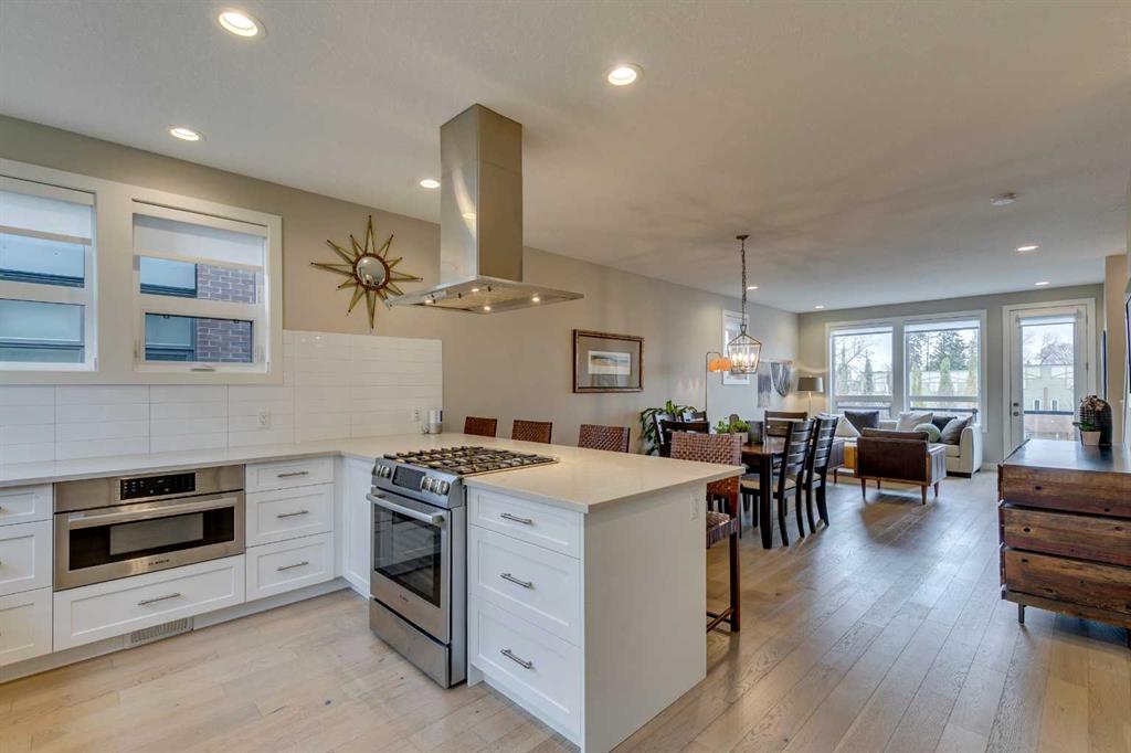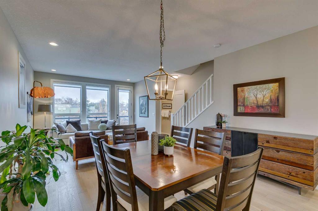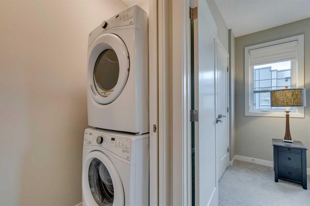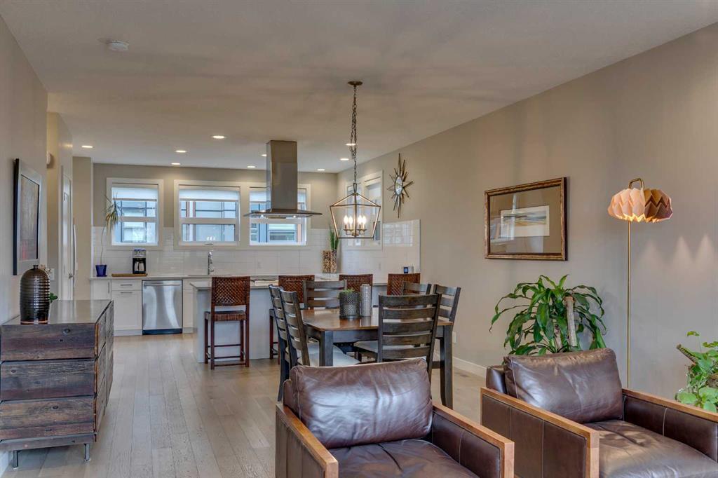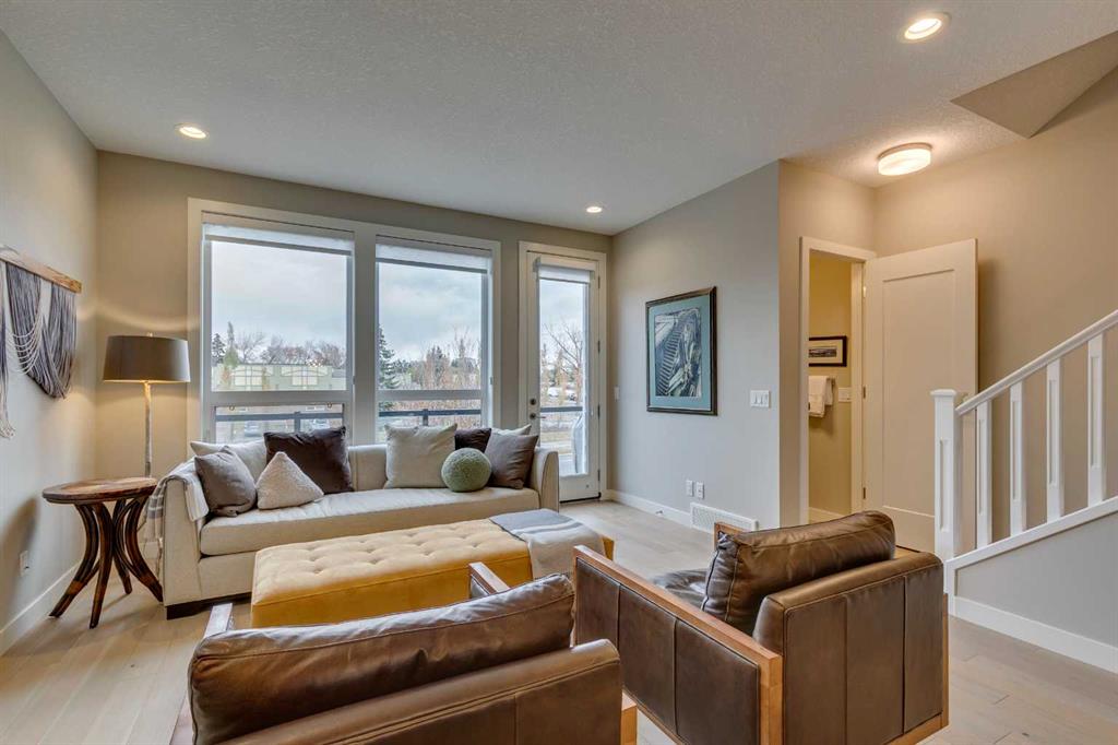 End-Unit Elegance in University District — Where Modern Luxury Meets Everyday Convenience...Welcome to The Ivy, a vibrant and thoughtfully planned community where contemporary architecture and urban living come together. This rare end-unit townhome offers elevated privacy, an abundance of natural light, and designer details throughout — all wrapped in a striking exterior finished with durable Hardie board siding and stunning brick accents that deliver timeless curb appeal...Step inside to a bright and versatile ground-floor flex room — perfect for a stylish home office, creative studio, or personal gym — along with direct access to the attached double car garage, a sought-after feature that sets this home apart...The main living level impresses with wide open spaces and upscale finishes. Luxurious wide plank engineered hardwood flooring stretches across the entire floor, while the open-concept layout seamlessly connects the kitchen, dining, and living areas. The chef-inspired kitchen is the heart of the home, featuring quartz countertops, sleek white cabinetry, stainless steel appliances, and a large breakfast bar — perfect for hosting or casual mornings. Large east-facing windows bathe the space in natural light, and the private balcony offers a serene retreat to enjoy your morning coffee or unwind in the evening. Central A/C ensures year-round comfort, while refined, low-maintenance finishes make living here effortless....Upstairs, two generously sized primary suites each enjoy their own private ensuite, offering luxurious comfort and privacy for residents or guests. A full laundry area is conveniently located on the upper level as well....Situated in the heart of Calgary’s award-winning University District, this home is just steps from everyday essentials — including a full-service grocery store, boutique shops, and diverse dining options. You’re also within walking distance to Market Mall, a local VIP Cineplex theatre, and have excellent proximity to both Alberta Children’s Hospital and Foothills Medical Centre — making this location ideal for medical professionals or families....With beautifully landscaped walking and cycling paths, nearby off-leash dog parks, and easy access to Crowchild Trail and the University of Calgary, this is inner-city living redefined. A rare offering of style, substance, and unbeatable location — discover the best of urban living at The Ivy.