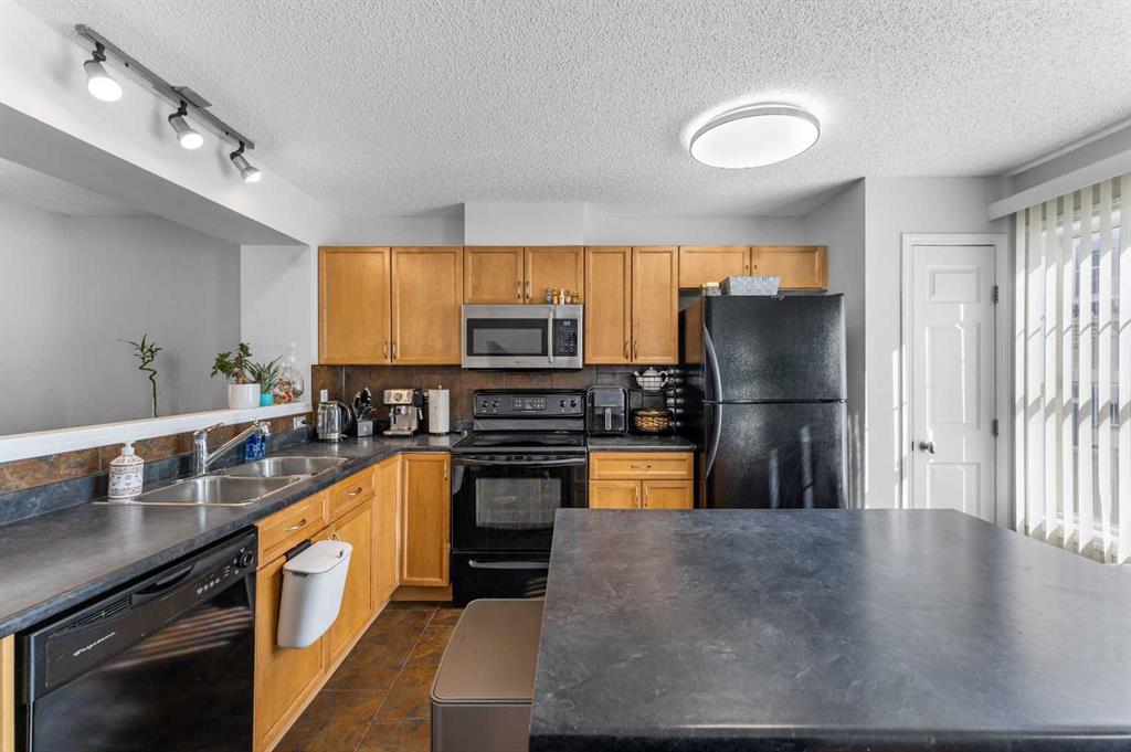 Welcome to this beautifully maintained townhome located in a well-managed complex, offering a functional double master bedroom design and an open-concept main floor perfect for modern living. The kitchen features a central island, tile backsplash, and built-in microwave hood fan, connecting seamlessly to the dining and living areas — an ideal layout for gatherings or relaxed evenings at home. Upstairs, you’ll find two spacious master suites, each with a private ensuite, along with a versatile den area ideal for a home office. Neutral finishes and laminate flooring throughout the main level create a clean and timeless look. This home also includes a double attached garage (19’x17’), extra storage space, and a convenient laundry sink. Step outside to enjoy your private fenced front patio, perfect for morning coffee, entertaining, or a small play space for pets. Located steps away from a school, bus stop with LRT connection, parks, and shopping — this home offers both comfort and convenience in one of the most desirable areas of the community.