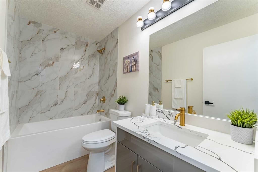 FULLY RENOVATED IN TEMPLE! Welcome to this beautifully renovated bi-level in Temple offering MODERN FINISHES, functional space, and abundant natural light! The newly painted exterior is complemented by beautiful landscaping, including a charming walk path with path lights that create a welcoming curb appeal. This Bi-level layout also offers a separate up-and-down entrance with a shared common landing, adding privacy and flexibility. The main living area is warm and inviting, featuring elegant wall panels, a beautiful ELECTRIC FIREPLACE, and a bright south-facing exposure that fills the home with sunshine. Just off the living room is the dining area, highlighted by bay windows, creating the perfect setting for family meals or entertaining. The brand-new kitchen is a true showpiece with high-gloss two-tone cabinetry, QUARTZ countertops, stainless steel appliances, and striking GOLD hardware and accents. There are 2 spacious bedrooms on the main level, including the primary with its own 2-piece ensuite, along with a stylish 4-piece main bath. Both bathrooms have been fully updated with gold faucets and fixtures for a luxurious touch. The FULLY FINISHED illegal basement suite expands the living space with 2 additional bedrooms, a huge recreation area, a 3-piece bathroom and another 2-piece bathroom. The kitchen also features QUARTZ countertops and is finished with ceramic tile flooring. Step outside to enjoy the MULTI-LEVEL DECK with a GAZEBO and lower picnic area, perfect for gatherings and entertaining. The property also includes RV parking, a heated double garage with 220V power, workshop setup, and bright LED lighting, plus convenient under-deck storage. WALKING DISTANCE to SCHOOLS, and a playground just one house away, this home truly combines comfort, function, and family-friendly living. Book a showing and come take a look at this gem!
