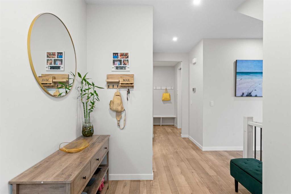 Welcome to 35 Cranbrook Mount SE, a home that surprises you in all the right ways. Tucked into a quiet CUL DE SAC on a pie shaped lot, this unique 3 STOREY home offers space, light, and flexibility that truly sets it apart. Just steps from the Bow River and Fish Creek Park, the setting feels peaceful and connected to nature. Step inside and you immediately notice the elevated features like 9 FOOT CEILINGS, 8 FOOT DOORS, and oversized windows that draw natural light deep into the space. The kitchen is both striking and functional, finished with full height cabinetry, quartz countertops, pot drawers, a beautiful tile backsplash, and sleek pot lighting. At the heart of it all, the island invites gathering, whether it is weekday breakfasts or drinks on the weekend with friends. Tucked just behind, the BUTLER’S PANTRY with open shelving and a sink keeps prep and storage beautifully organized. The dining nook is bright and welcoming, flowing seamlessly into the great room where a striking ELECTRIC FIREPLACE adds warmth and ambiance. A well placed powder room and mudroom complete the main level with everyday practicality. Upstairs, the second floor is designed for real family living. A spacious BONUS ROOM creates the perfect hangout for movie nights or homework sessions. Two generous bedrooms share a full bath with quartz counters, while the primary suite feels like a true retreat. The ensuite features DOUBLE SINKS, a WALK IN SHOWER, a deep soaker tub, and a large WALK IN CLOSET that makes staying organized effortless. Laundry is conveniently located on this level with plenty of storage, a detail you will appreciate from day one. Then there is the third storey. This is where the home becomes unforgettable. A massive bonus space with a wet bar opens onto a covered southwest facing balcony, creating the ultimate lounge for long summer evenings and sunset views. With its own powder room, this level offers flexibility for entertaining, a home office, a games room, or a private escape away from the rest of the house. The unfinished basement is ready for your ideas, whether that means a home gym, additional bedroom, or recreation space. The double attached garage adds comfort and convenience year round. Outside, the pie shaped lot gives you a backyard that feels expansive and private. The large deck is made for morning coffee and summer BBQs, with room for kids to play and friends to gather. Living in Cranston means access to the Cranston Residents Association with its splash park, skating rink, tennis courts, and community events, plus endless pathways along the river and through Fish Creek Park. It is a lifestyle rooted in connection, nature, and community. Homes like this do not come along often. Three finished levels, a CUL DE SAC location, and that incredible third floor retreat make this one truly special. Come see it in person and imagine the memories waiting to be made.