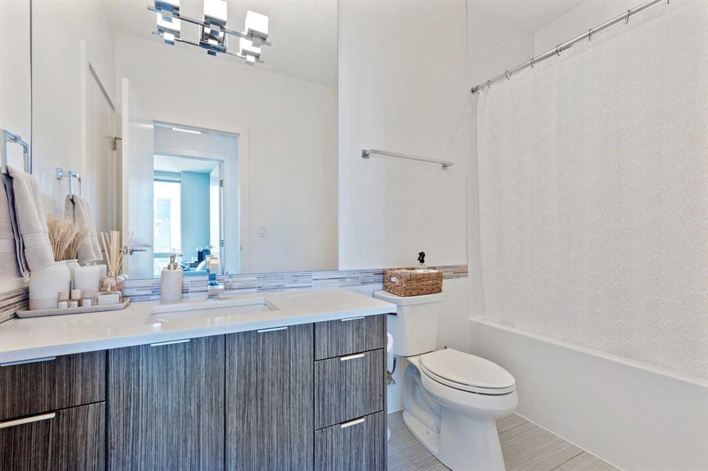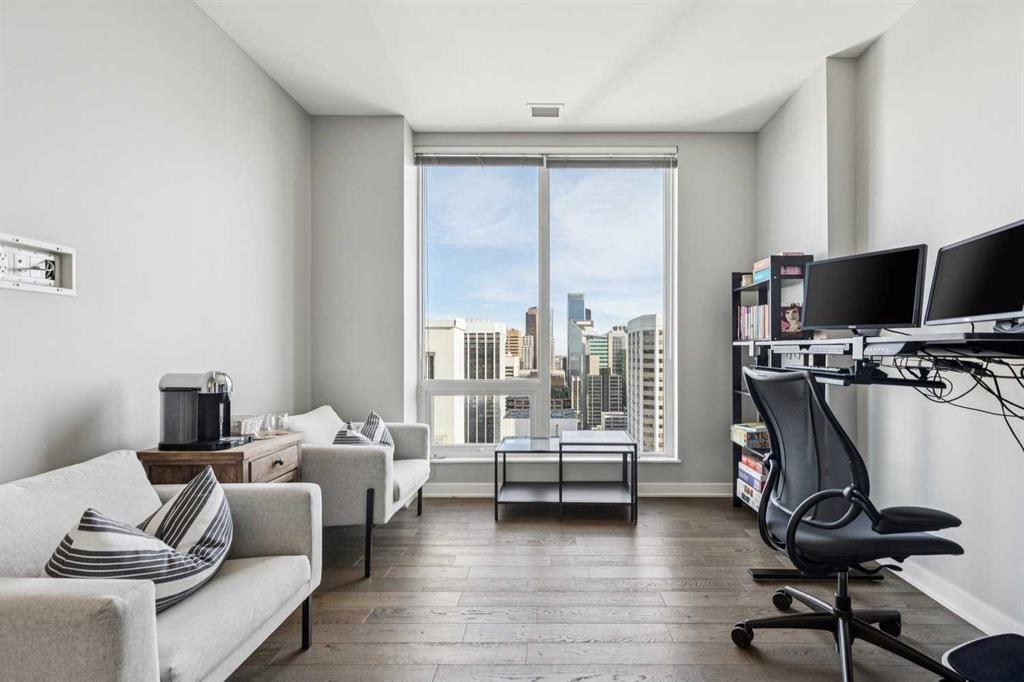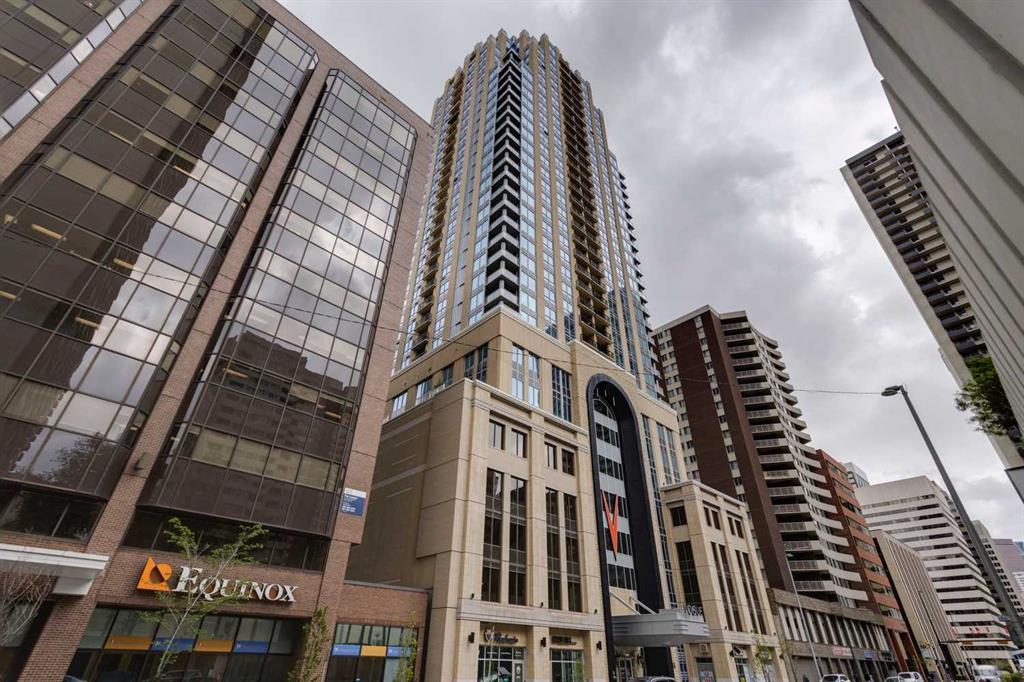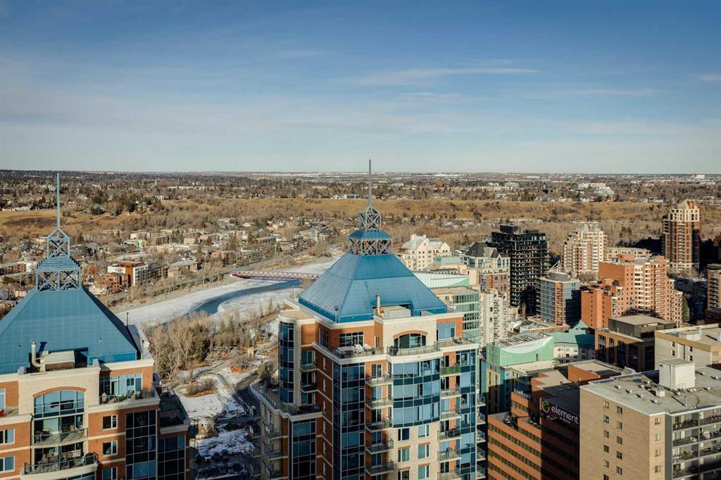 Experience elevated penthouse living at The Vogue, perched high above the city’s financial core. This rare 2 bedroom, 2 bathroom residence features soaring vaulted ceilings, floor-to-ceiling windows, and TWO well-placed balconies that capture sweeping urban views, river views, and natural light throughout the day. The thoughtfully designed layout includes a spacious primary retreat with a walk-in closet and an exceptional 5-piece ensuite with double vanity, a separate in-unit laundry room, and open-concept living ideal for both everyday comfort and entertaining. Offered in only a limited number of high-rise units, this penthouse delivers a truly exclusive living experience. Completing the package are TWO TITLED underground parking stalls (UNITS 1 & 2) with immediate access from the parkade entrance, a rare and valuable convenience in the downtown core.