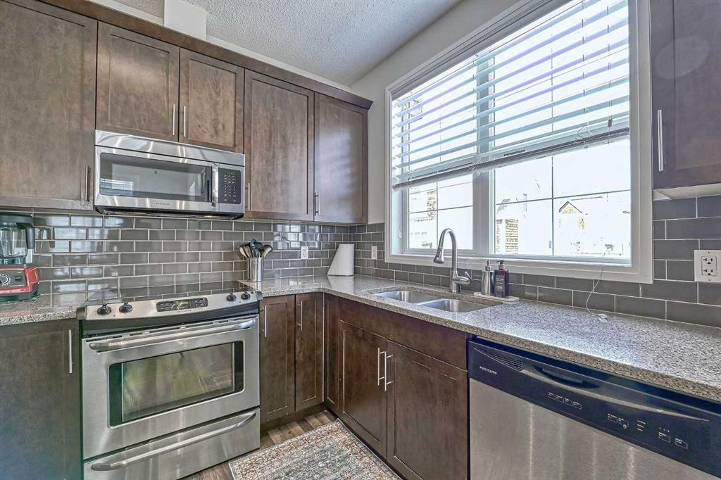 PRICE REDUCED TO SELL IT NOW! ***PUBLIC OPEN HOUSE THIS WEEKEND, the 25th & the 26th of April, 2.00-p.m.-4.00p.m. ***Move in with a peace of mind to this Prelisting Professionally Inspected (report in supplements and also available upon request), TWO Master Suites, END unit boasting over 1800 sq ft of a developed space. The oversized master bedrooms serve as a true retreat, featuring a large en-suite bathrooms and walk-in closets designed for relaxation, privacy a lot of storage. The additional, third bedroom is generously sized, making this home both functional and flexible for a variety of lifestyles. This inviting residence is perfectly suited for those seeking both comfort and style, with spacious interiors and modern finishes throughout. Step inside and be greeted by a spacious and open floor plan that immediately feels like home. The seamless integration of the living, dining, and kitchen areas maximizes the space, creating a versatile environment that’s perfect for both relaxation and entertaining. The living room boasts a custom deluxe feature wall that includes an electric fireplace, built in wall unit with doors and a T.V. nook. The heart of the home, the kitchen, features recent updates that elevate its style and functionality. The kitchen is a culinary dream with endless countertops, a kitchen island, and a breakfast bar, ideal for casual meals or entertaining friends. Stainless-steel appliances and granite countertops add a touch of modernity, while ample storage and prep space ensure cooking is a delight. Natural light fills the interiors, creating a warm and welcoming environment throughout the home. Attention to detail is evident in every corner, from the open layouts to the carefully chosen finishes. Whether enjoying a quiet morning coffee or an evening under the stars, the private balcony makes your outdoor relaxation a daily luxury. The large, insulated and heated garage provides abundant space not only for vehicles but also for storage and hobbies. Designed with convenience in mind, it ensures all the practical aspects of daily living are met with ease. All of that located within close proximity to public transportation, grocery stores, restaurants, coffee shops, walking and biking paths. Move-in ready and designed with both comfort and elegance in mind, it is a property that will appeal to discerning buyers who value quality and charm. Schedule your visit today to experience the possibilities firsthand.
