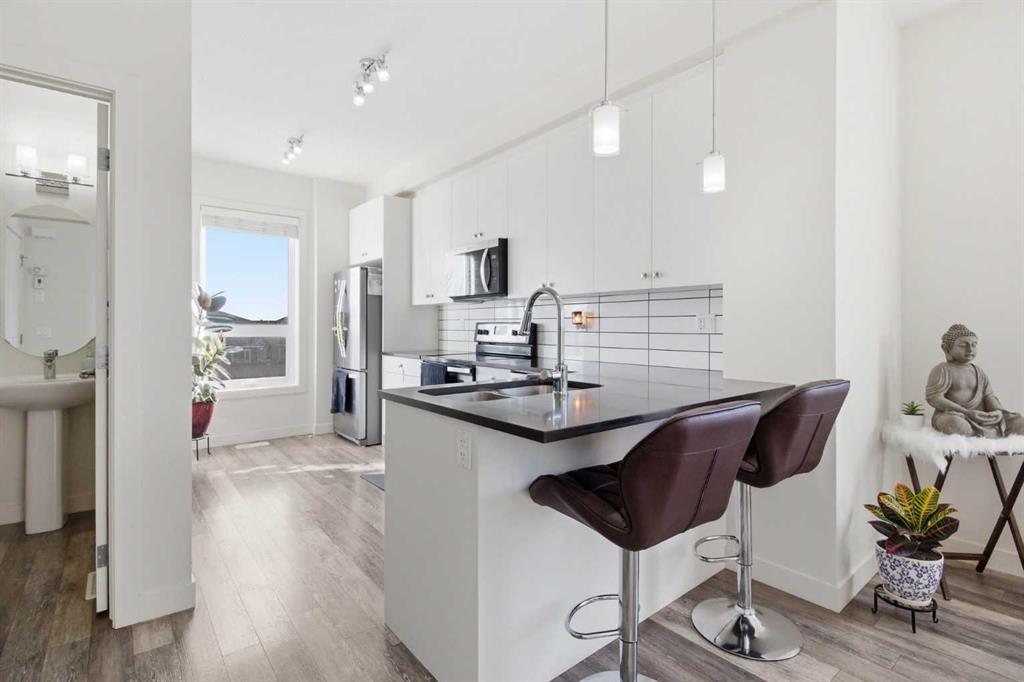 WELCOME TO THIS BEAUTIFULLY MAINTAINED 3-STOREY TOWNHOME IN THE HIGHLY DESIRABLE COMMUNITY OF EVANSTON NW CALGARY! Offering approximately 1,280 SQ.FT. OF FUNCTIONAL LIVING SPACE, this FRESHLY PAINTED, bright and modern home features a SPACIOUS OPEN-CONCEPT LAYOUT designed for comfortable everyday living and entertaining. The main living level showcases 9’ CEILINGS, LARGE WINDOWS FOR ABUNDANT NATURAL LIGHT, AND A MODERN KITCHEN WITH QUARTZ COUNTERTOPS, STAINLESS STEEL APPLIANCES, AND SOFT-CLOSE CABINETRY. The upper level offers TWO GENEROUS PRIMARY BEDROOMS, EACH WITH ITS OWN PRIVATE ENSUITE AND AMPLE CLOSET SPACE, providing excellent comfort and privacy. Enjoy the convenience of UPPER-LEVEL LAUNDRY for everyday ease. The entry level features a VERSATILE DEN OR FLEX SPACE—PERFECT FOR A HOME OFFICE, WORKOUT AREA, OR STUDY AREA. Additional highlights include an OVERSIZED SINGLE ATTACHED GARAGE with water line, CENTRAL AIR CONDITIONING UNIT, PRIVATE BALCONY WITH GAS LINE FOR BBQ, and a BRIGHT END-UNIT LOCATION WITH EXTRA WINDOWS providing abundant natural light. Conveniently located close to SCHOOLS, PARKS, WALKING PATHS, PLAYGROUNDS, SHOPPING, RESTAURANTS, TRANSIT, AND MAJOR ROADWAYS making commuting easy and daily living convenient. 3D VIRTUAL TOUR AVAILABLE FOR EASY ONLINE VIEWING. Call your Favorite Realtor to schedule a private viewing.